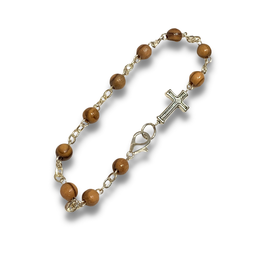 A genuine olive wood decade rosary with medal links and a small medal of the Face of Jesus wearing the crown of thorns. This decade rosary also includes a clasp, making it easily wearable. Our Lady is a mother to us all and this decade rosary draws us to her maternal love as we offer prayers to console the Heart of Her Son. This decade rosary, coming from the land where Our Lord lived and died, is perfect as a gift or for yourself to offer prayers for your family, your friends, and the entire world. This decade rosary comes all the way from the Holy Land and is brought by Mother Adela, Foundress SCTJM, when she leads pilgrimages.