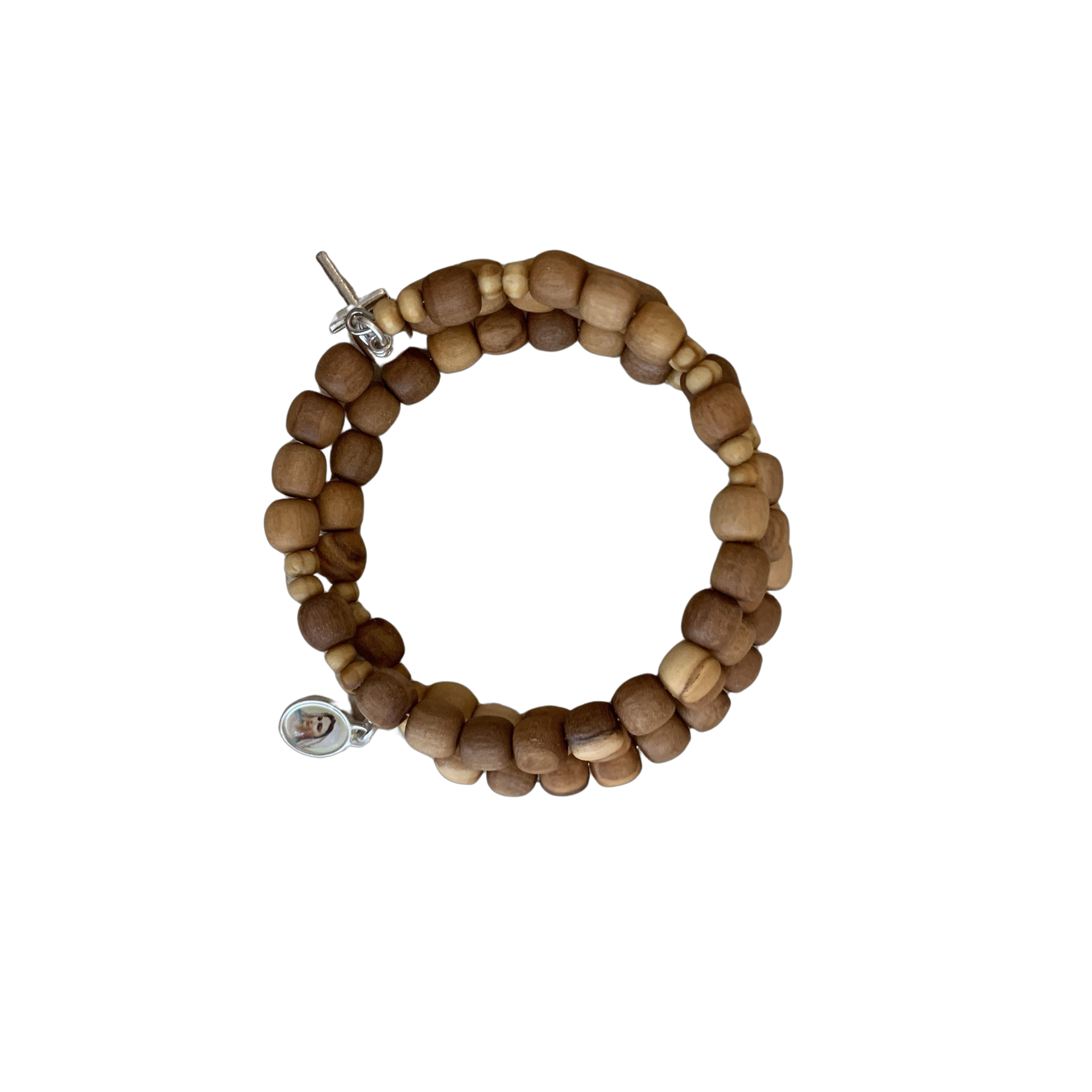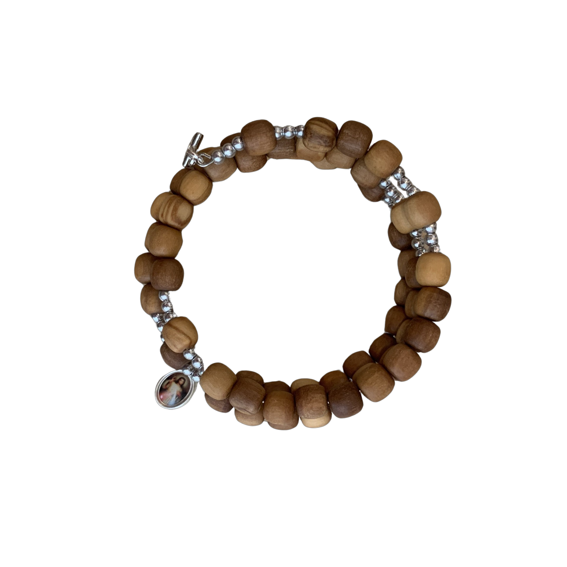 Olive Wood Wrap Queen of Peace Wire Bracelet