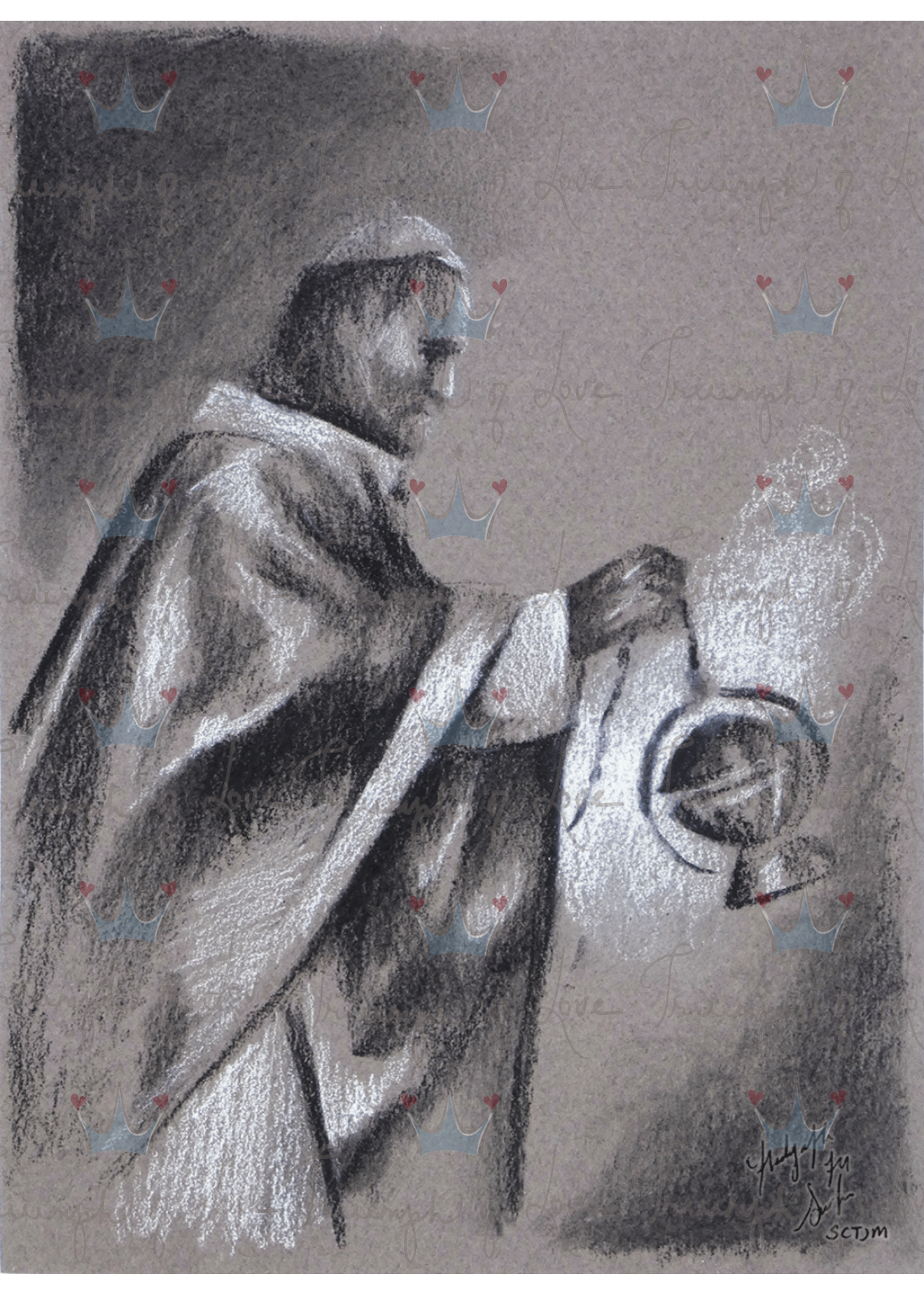 Original St. John Paul II with Incense Charcoal Print by SCTJM