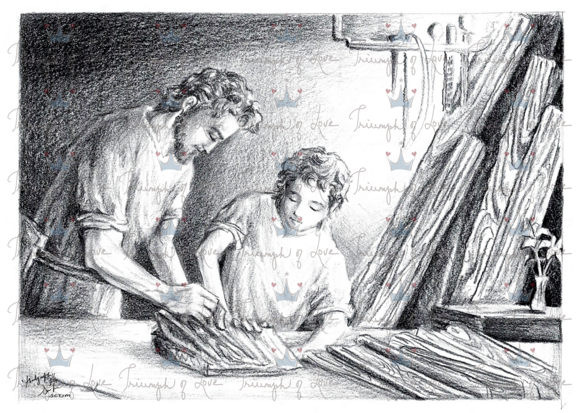 Original St. Joseph and Young Jesus Working Print by SCTJM