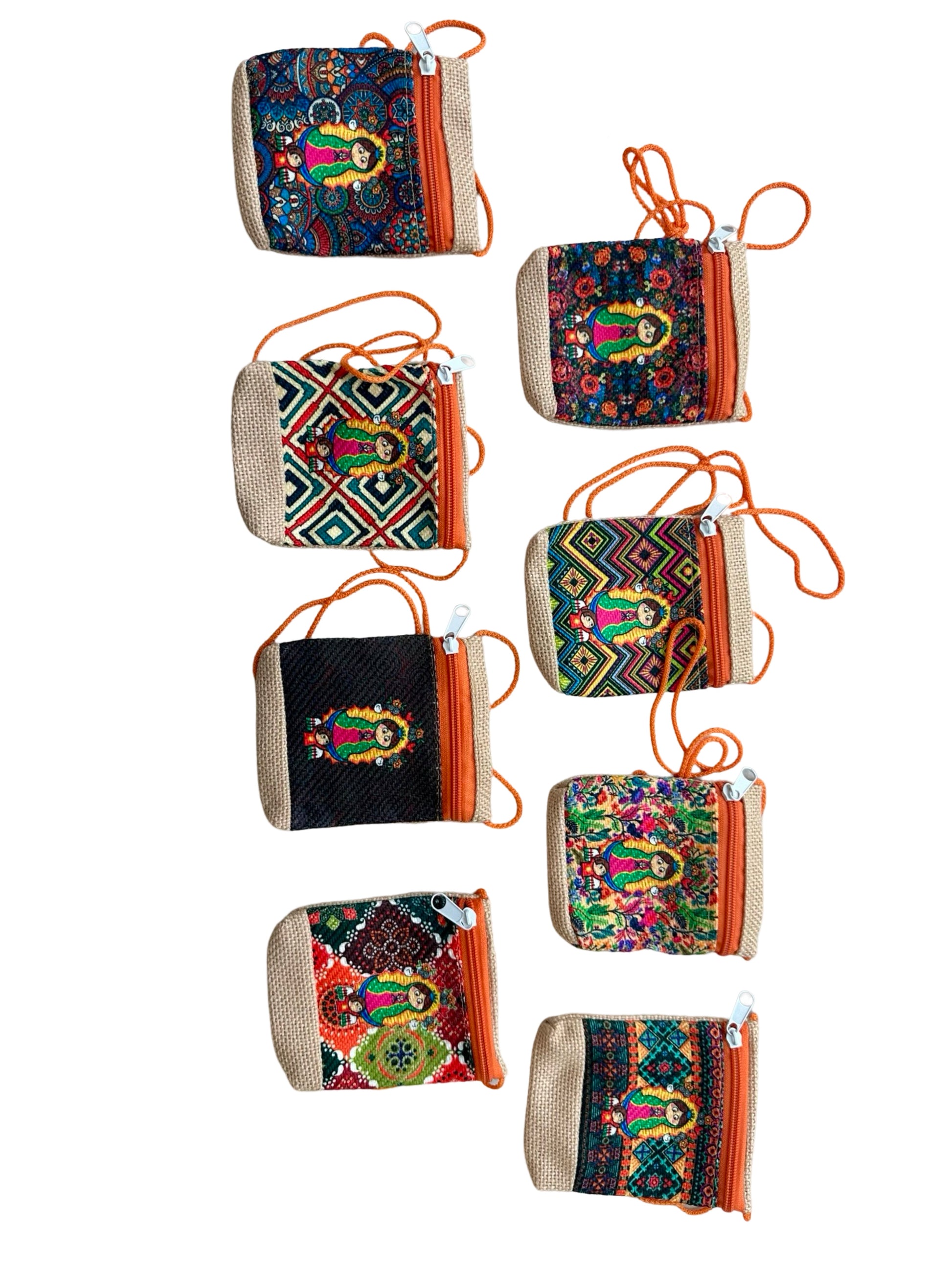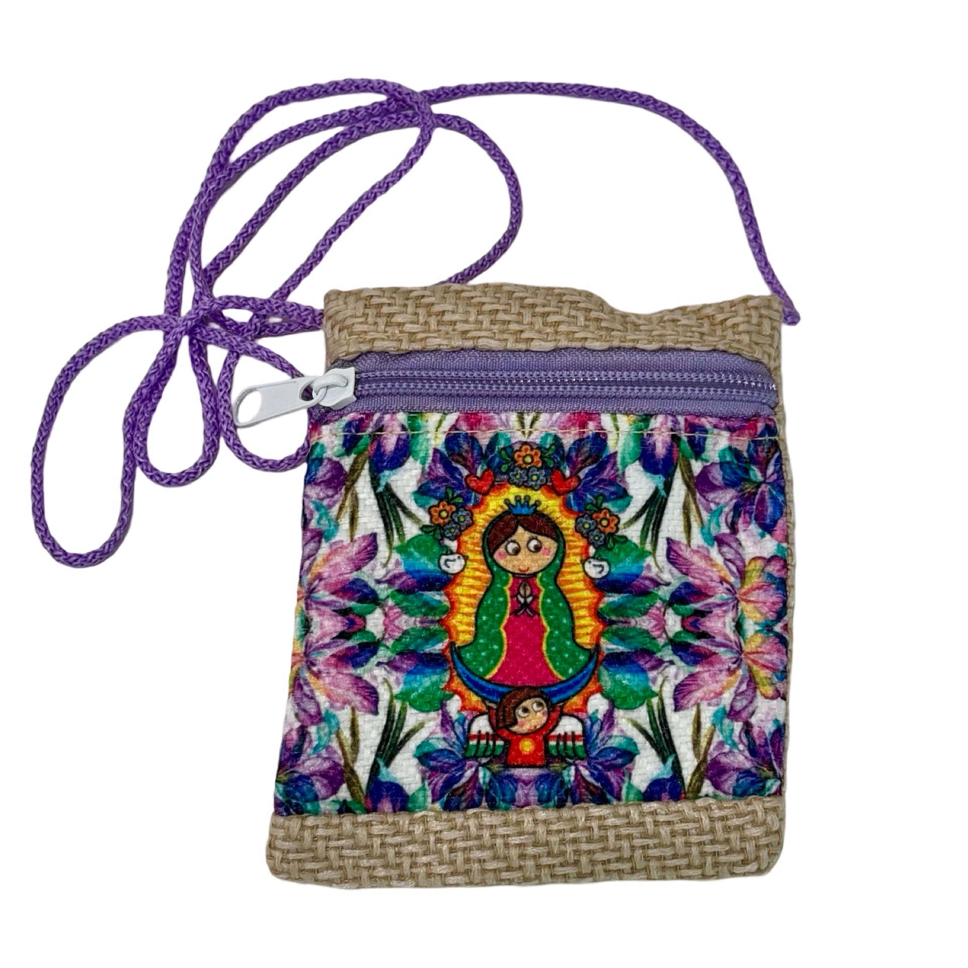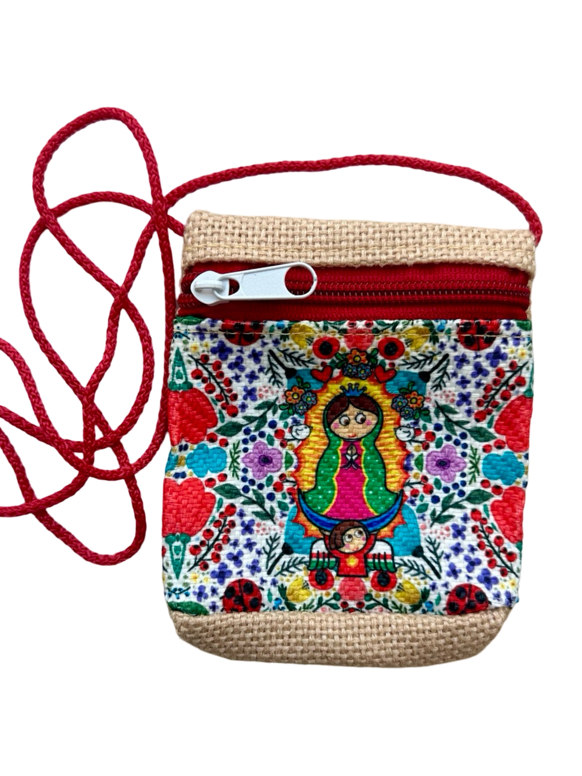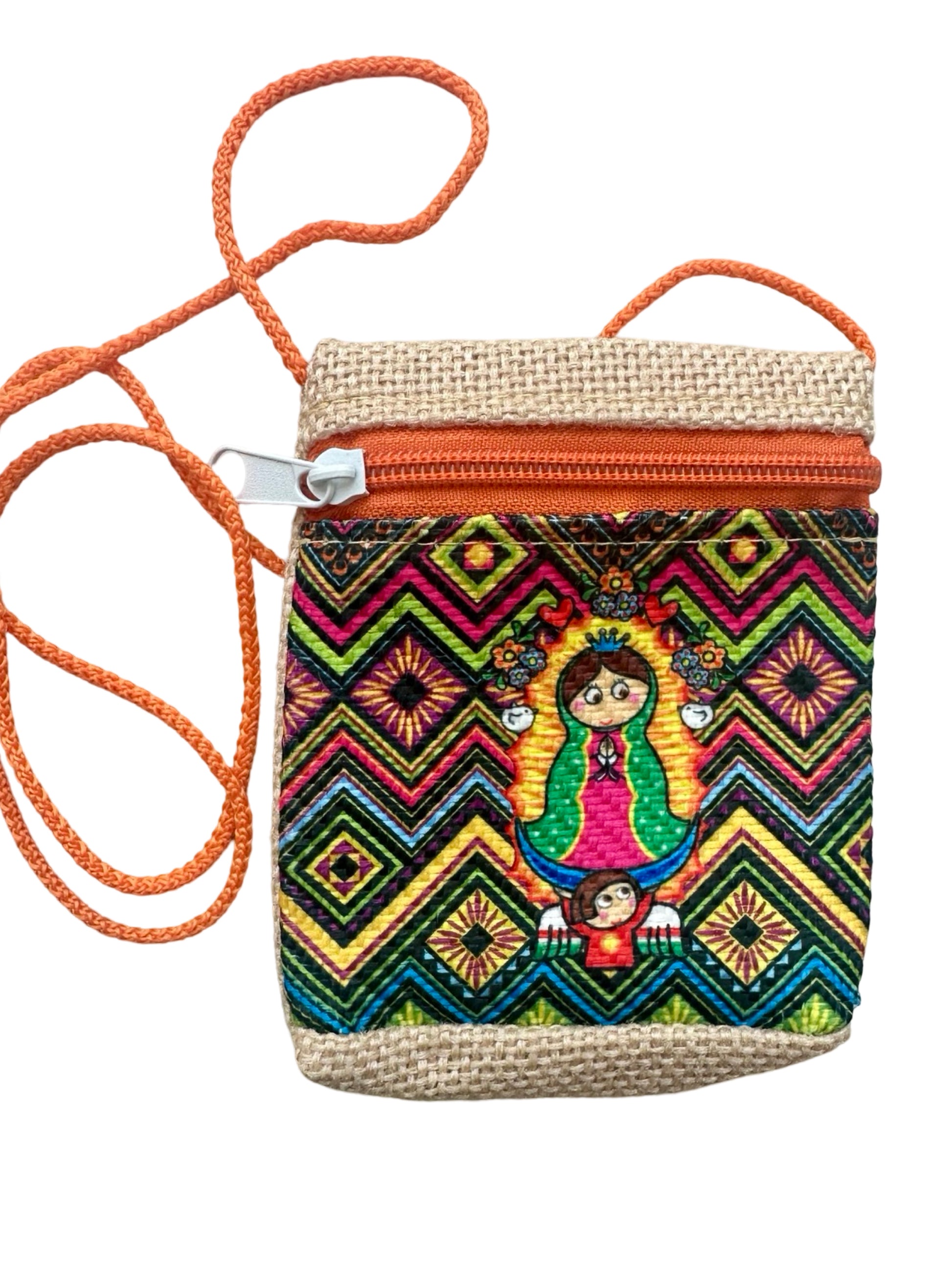 These cute shoulder bags with string and zipper have various designs with Our Lady of Guadalupe brought from Mexico.