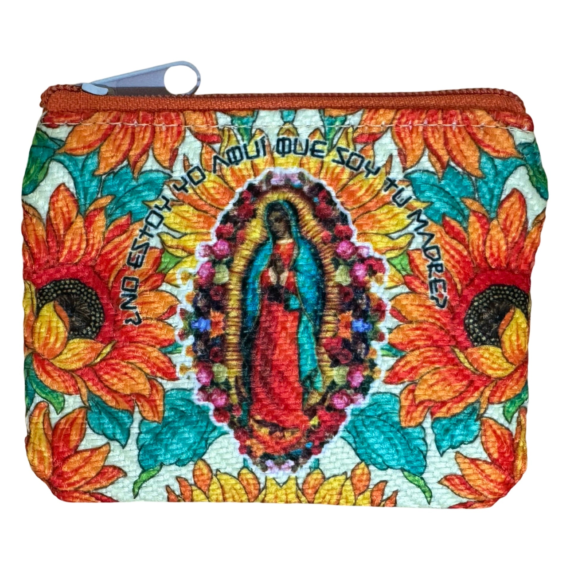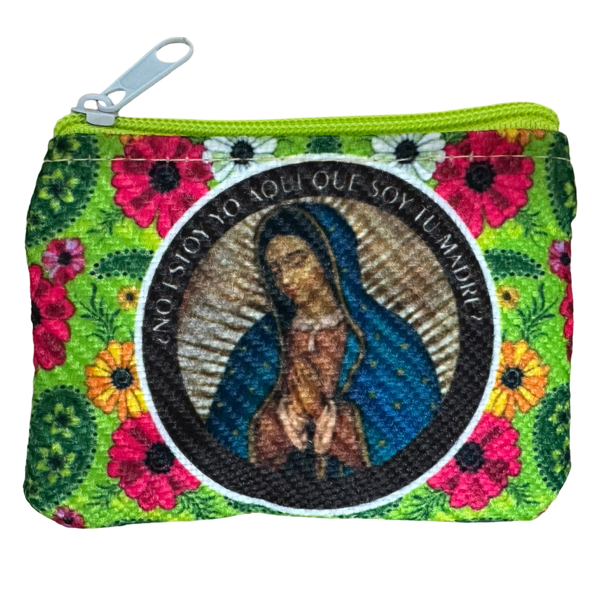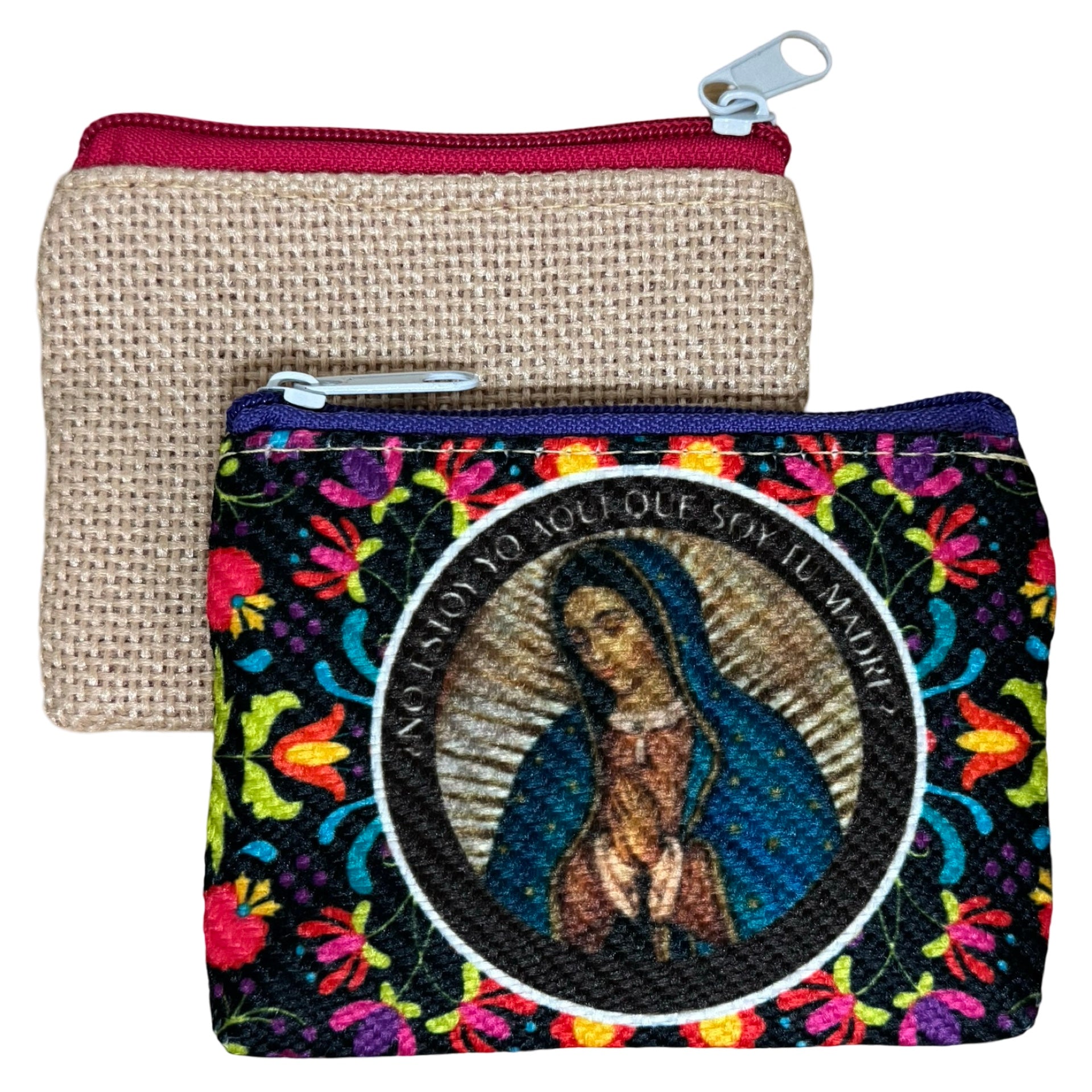 These zipper pouches of Our Lady of Guadalupe were brought from Mexico and have various bright designs and colored zippers. They are the perfect size to safeguard rosaries, holy cards, and other religious articles.