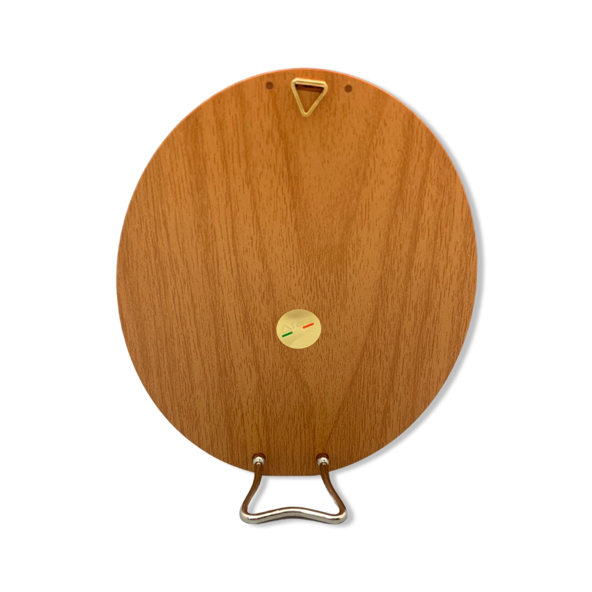 A golden bordered oval image of St. Michael is an elegant addition to any home and a constant assurance of his spiritual protection. This image is accompanied by a removable metal footing to be stood on tables and bookshelves. It is also equipped with hardware to be easily mounted on walls. This product is brought with love by our Sisters serving the Heart of the Church in Rome, Italy!