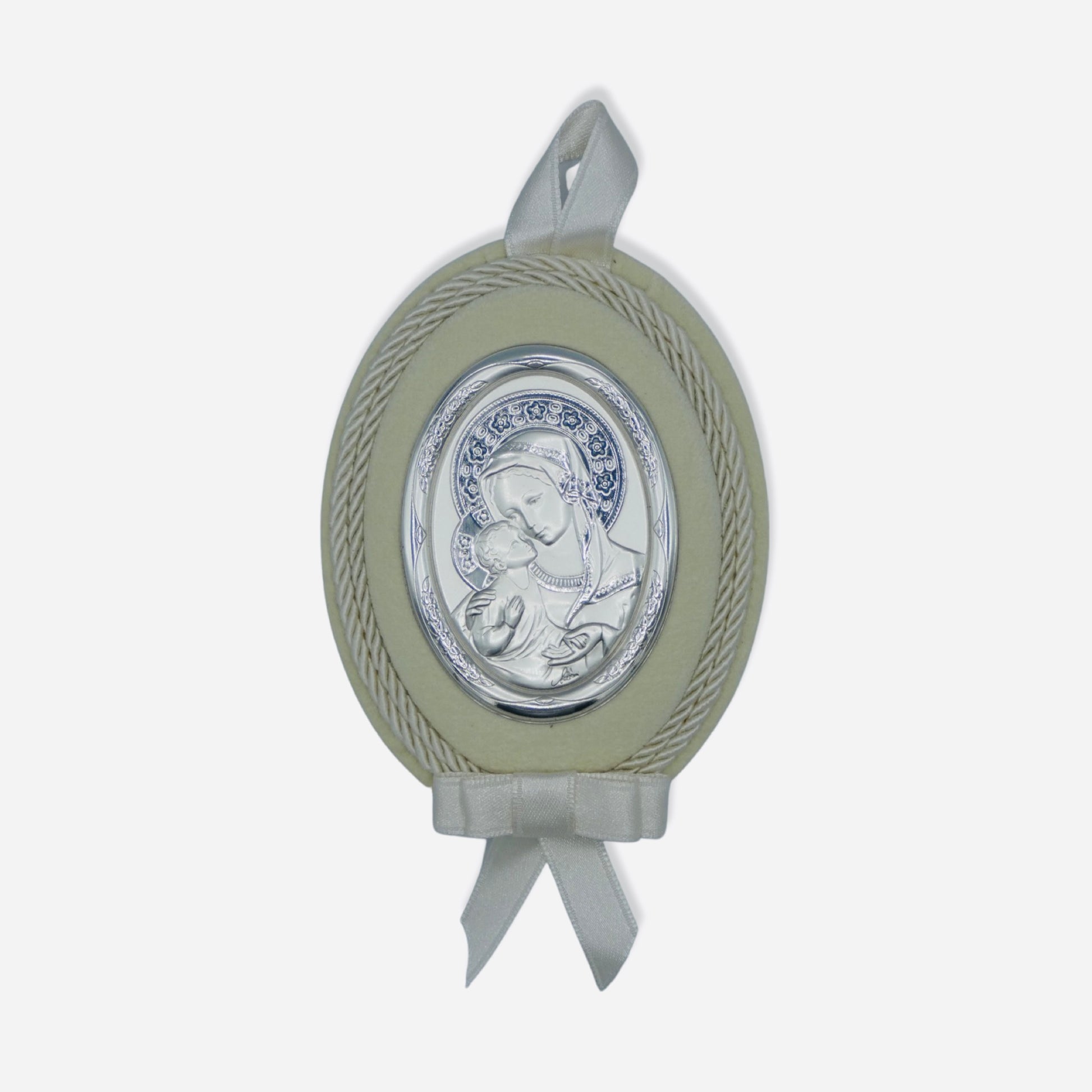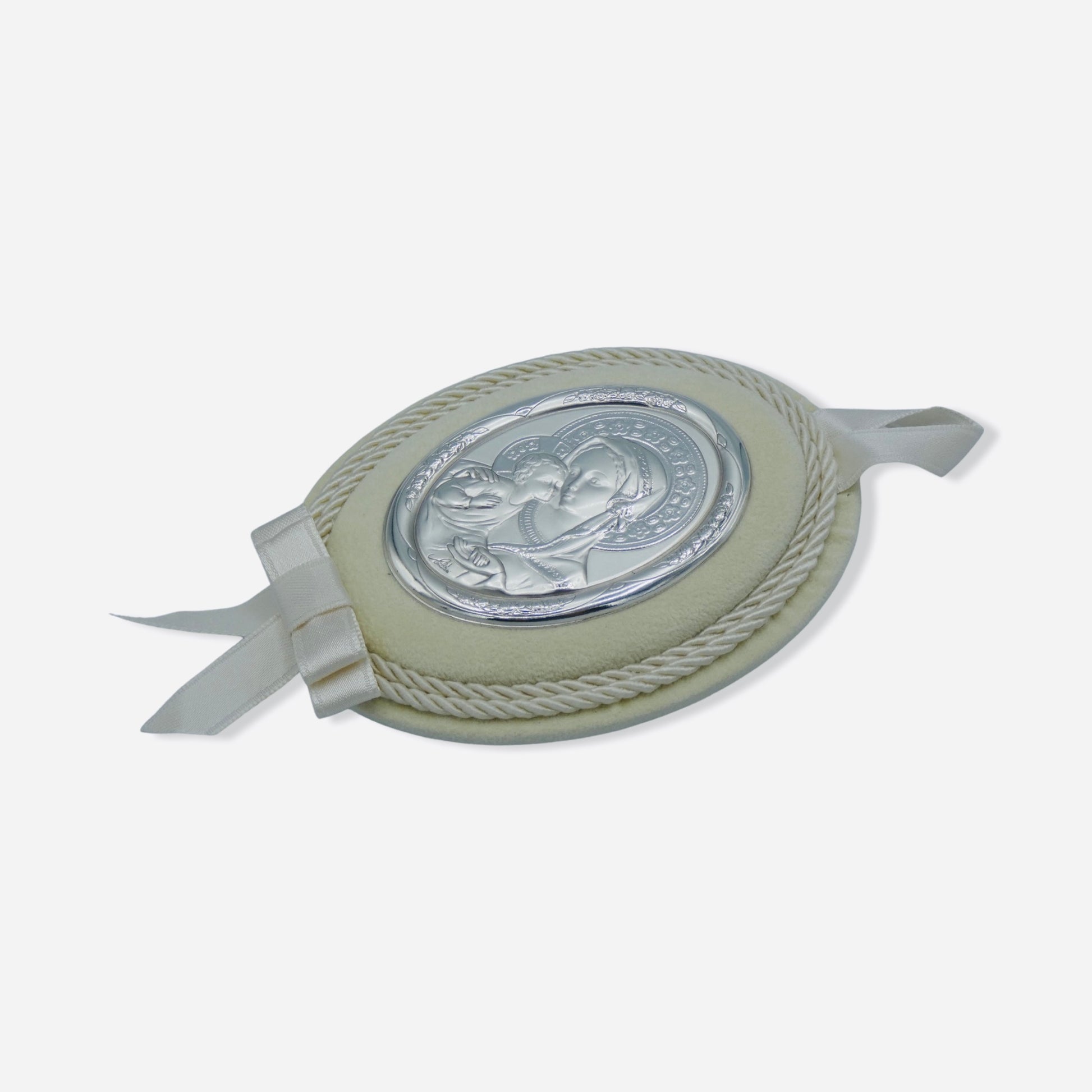 Oval Our Lady of Tenderness Baby Crib Silver Medallion