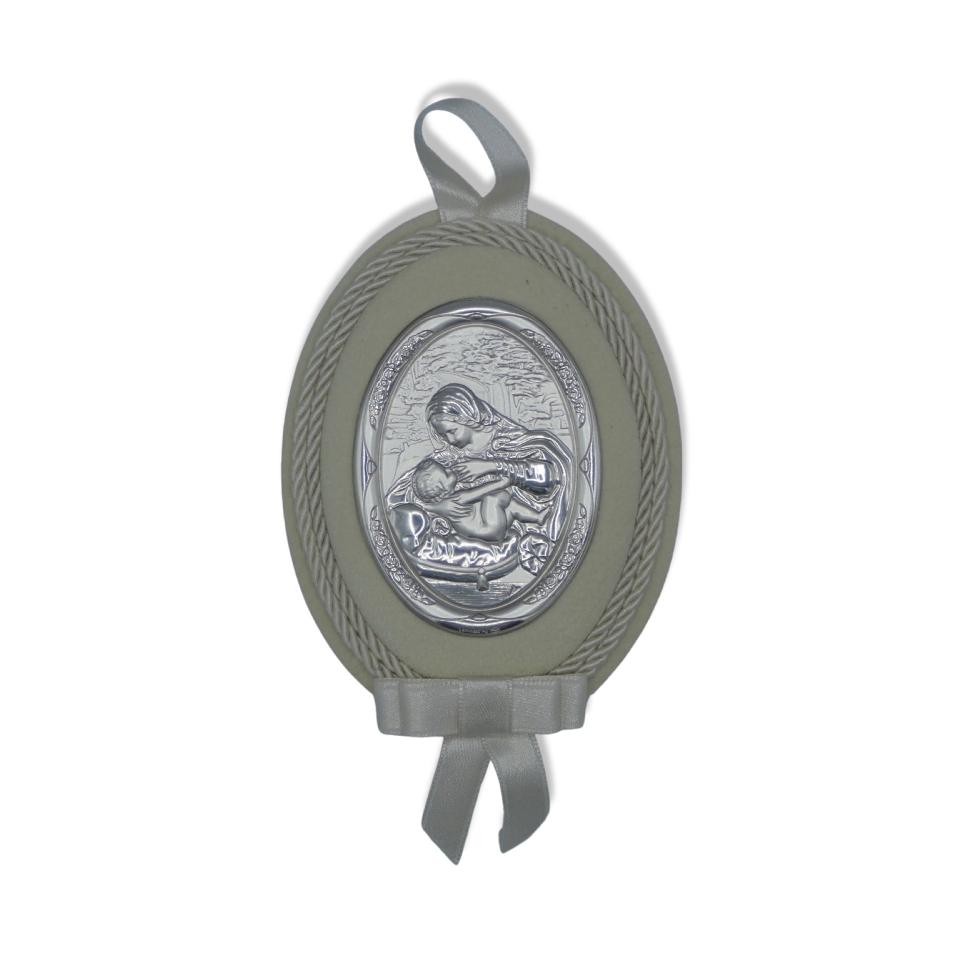 Oval Our Lady of La Leche Silver Baby Crib Medallion