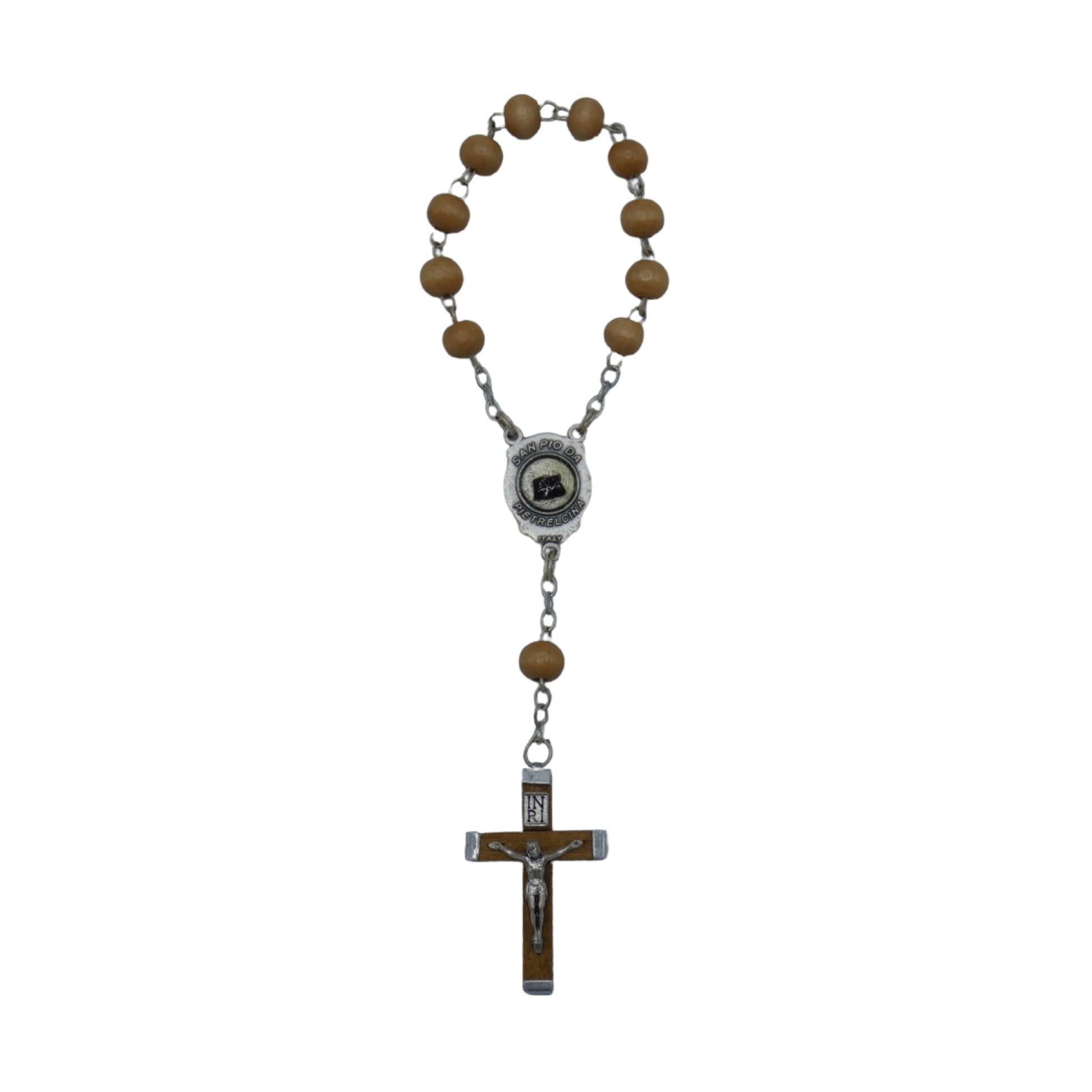 Padre Pio Hickory Wood Colored Decade Rosary with Relic
