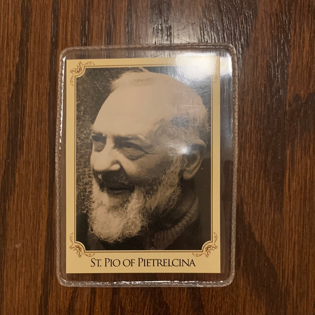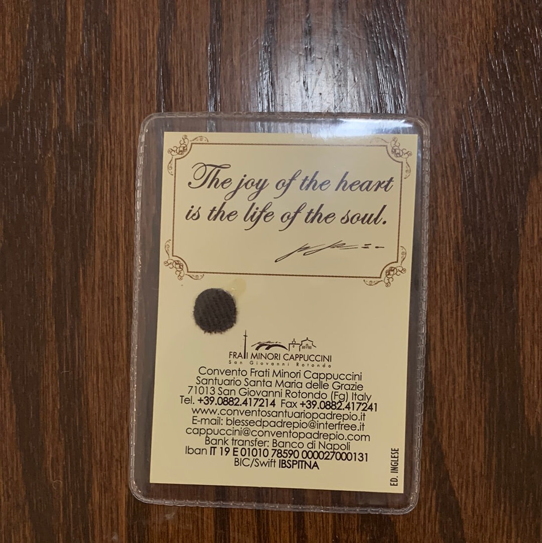 What better way to be immersed in the spiritual presence of St. Padre Pio than with a convenient Holy Card that fits in any pocket, bag, bible, the possibilities are endless! These cards come from San Giovanni Rotondo and include a relic of St. Padre Pio.