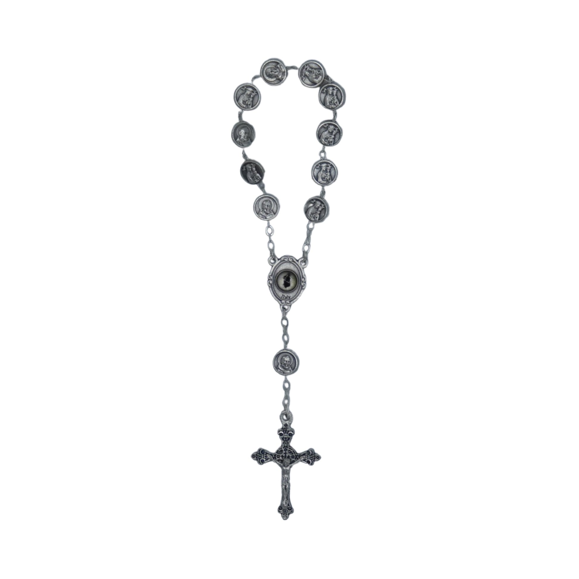 This decade rosary comes all the way from San Giovanni Rotondo and is made of metal beads with metal links. The Our Father bead is a medal of St. Padre Pio with a second-class relic as the Our Father bead. This decade comes with a metal crucifix with decorative points and unites the spiritual power of Our Lady and St. Padre Pio. This decade rosary also comes with a Holy Card. This product is brought with love by our Sisters serving the Heart of the Church in Rome, Italy!
