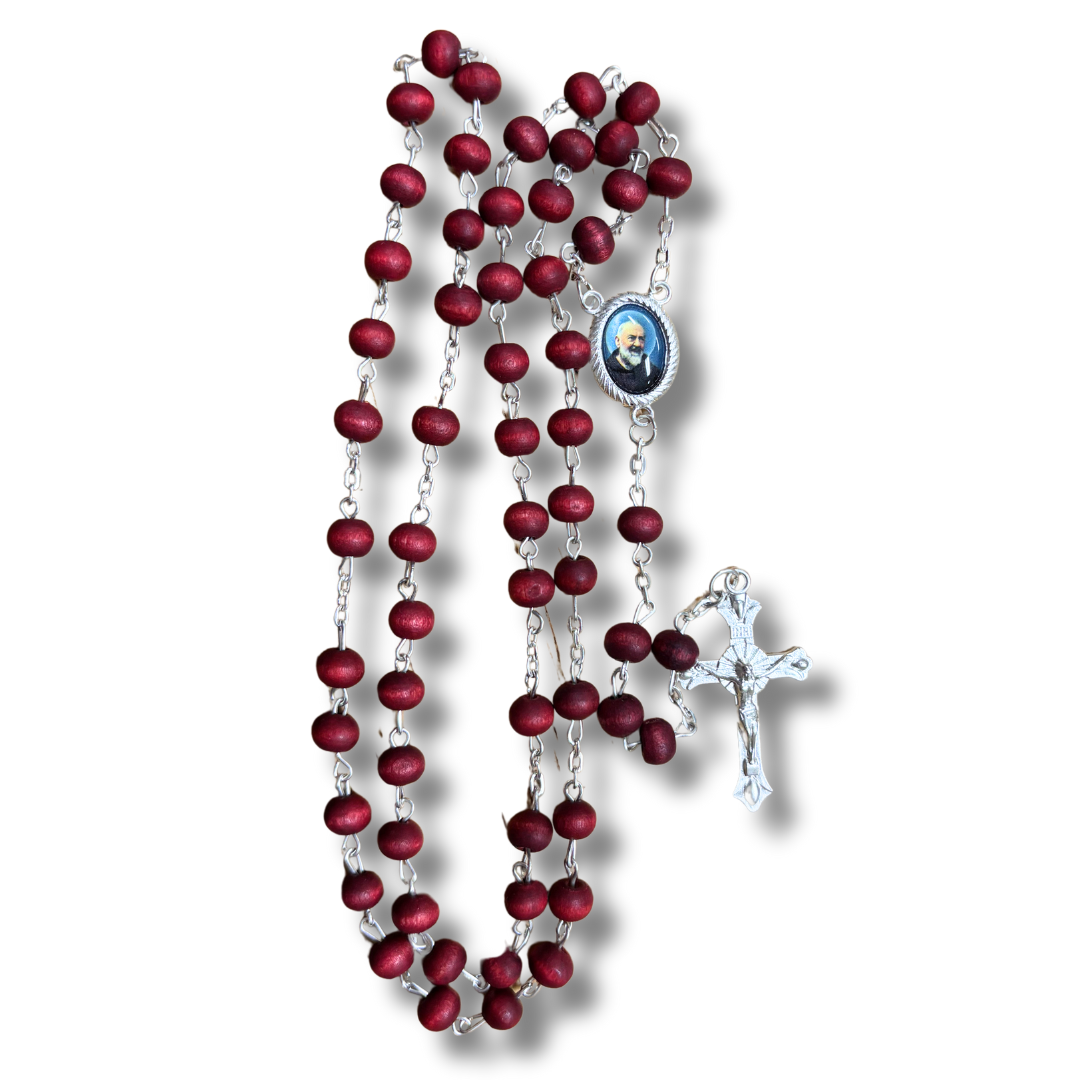 Padre Pio Rose Petal Rosary with Case