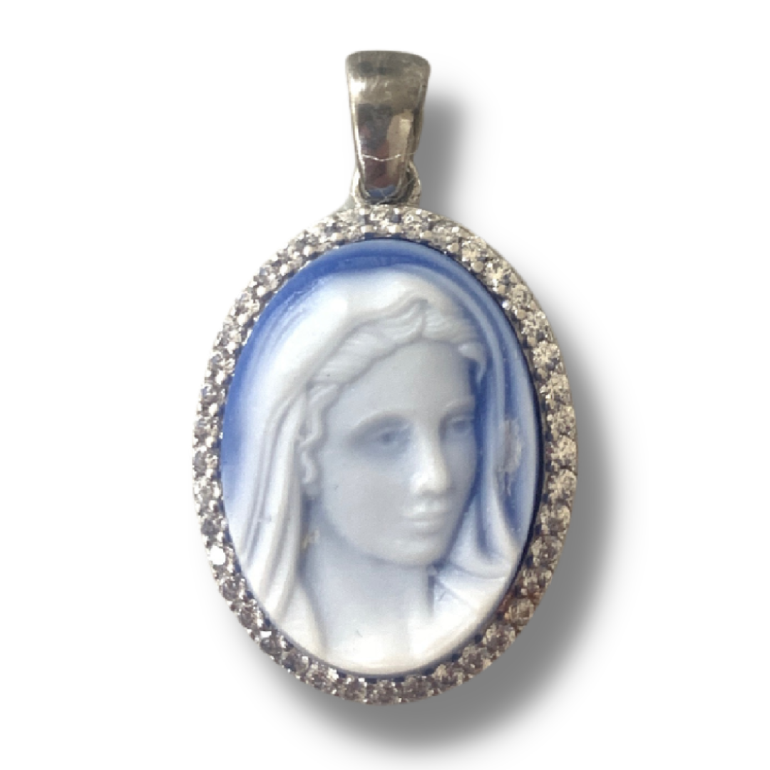 Queen of Peace Cameo Medal with Diamond Border