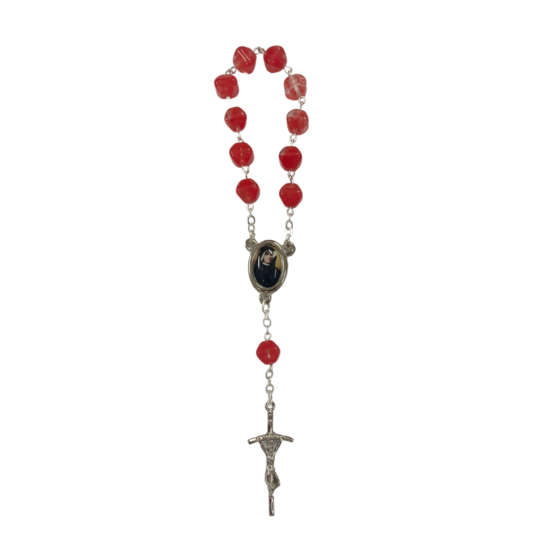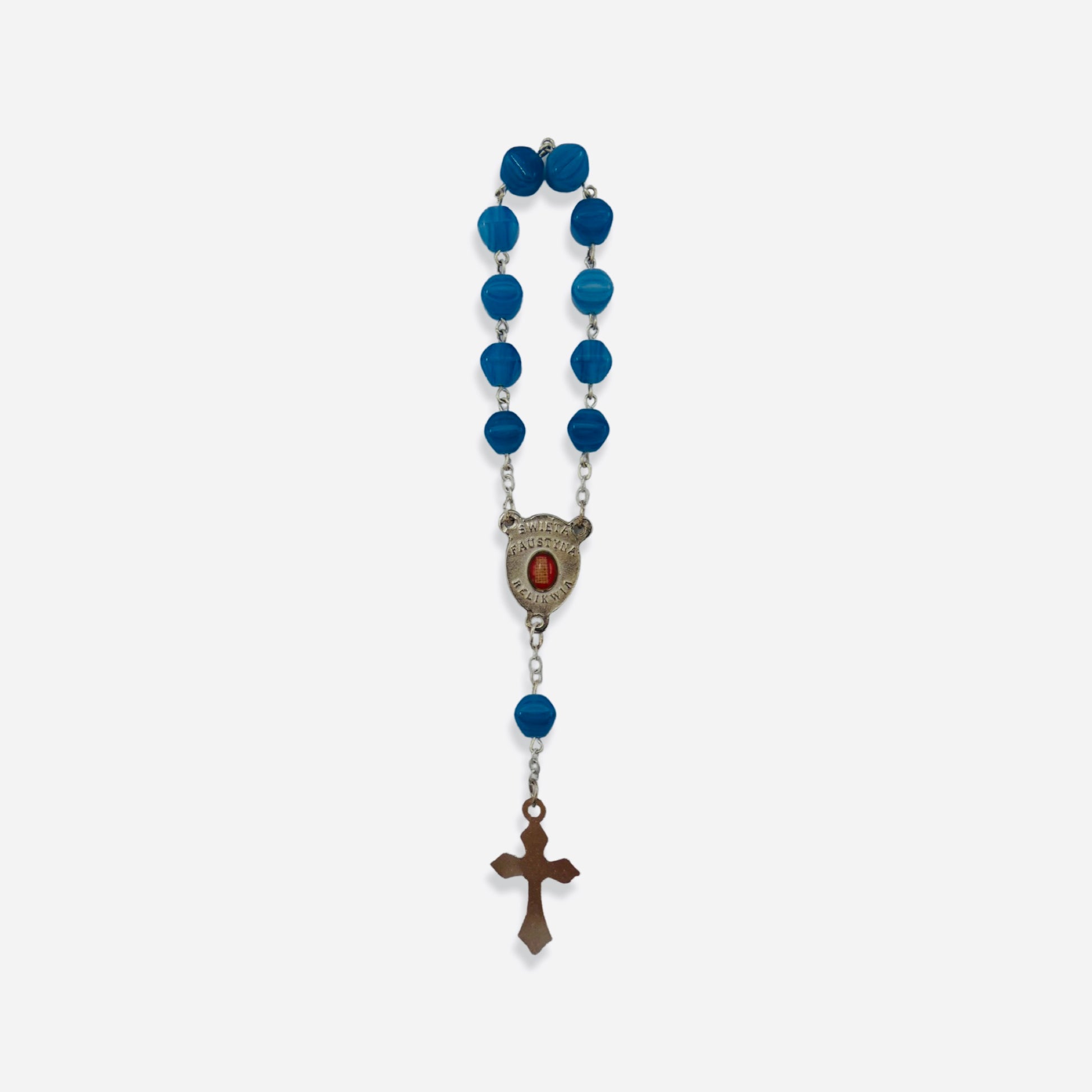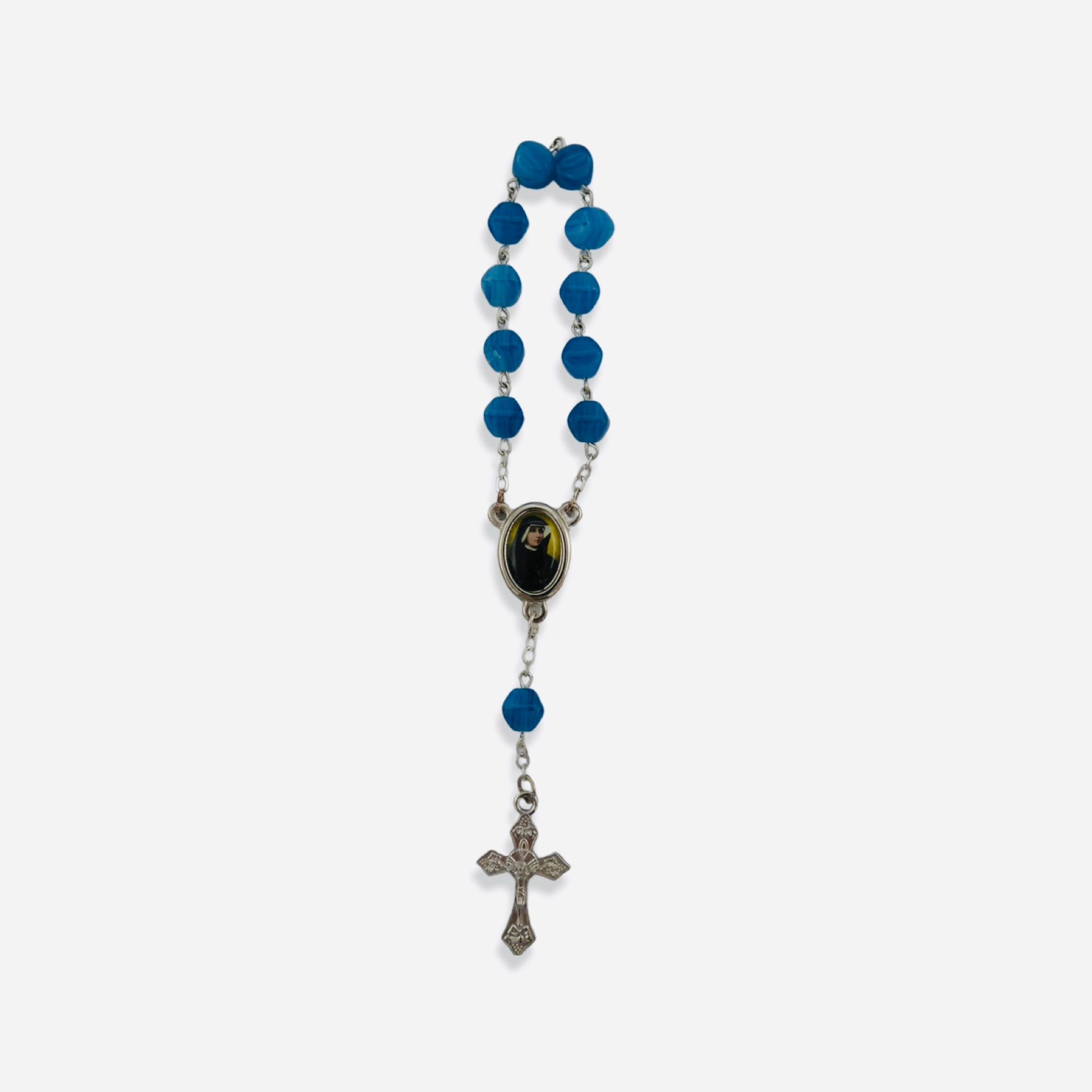 A marble decade rosary which is joined together by an image and relic of St. Faustina Kowalska. This decade is perfect to carry with you to recite the chaplet of Divine Mercy. A great gift for First Reconciliation or anyone in need of God's abounding mercy. Included with this item is a Divine Mercy prayer card in English.