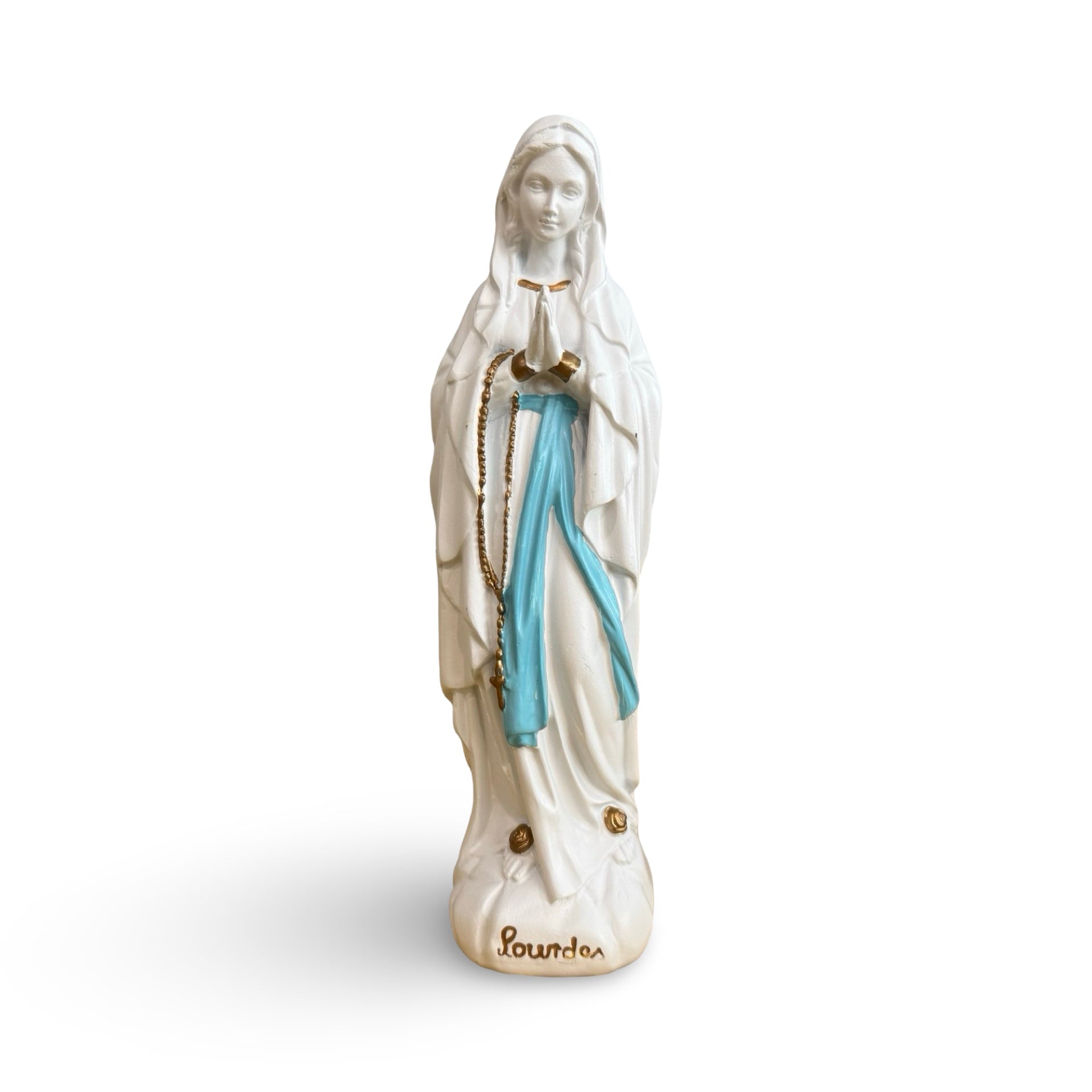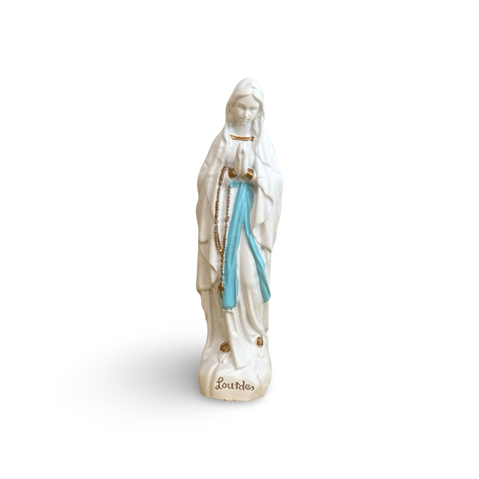 These beautiful resin statues of Our Lady of Lourdes with a light blue sash were brought all the way from Lourdes, France. They are made of a durable material and will make a beautiful addition to your office desk, child’s nightstand, or your home decor. It also makes a wonderful present!