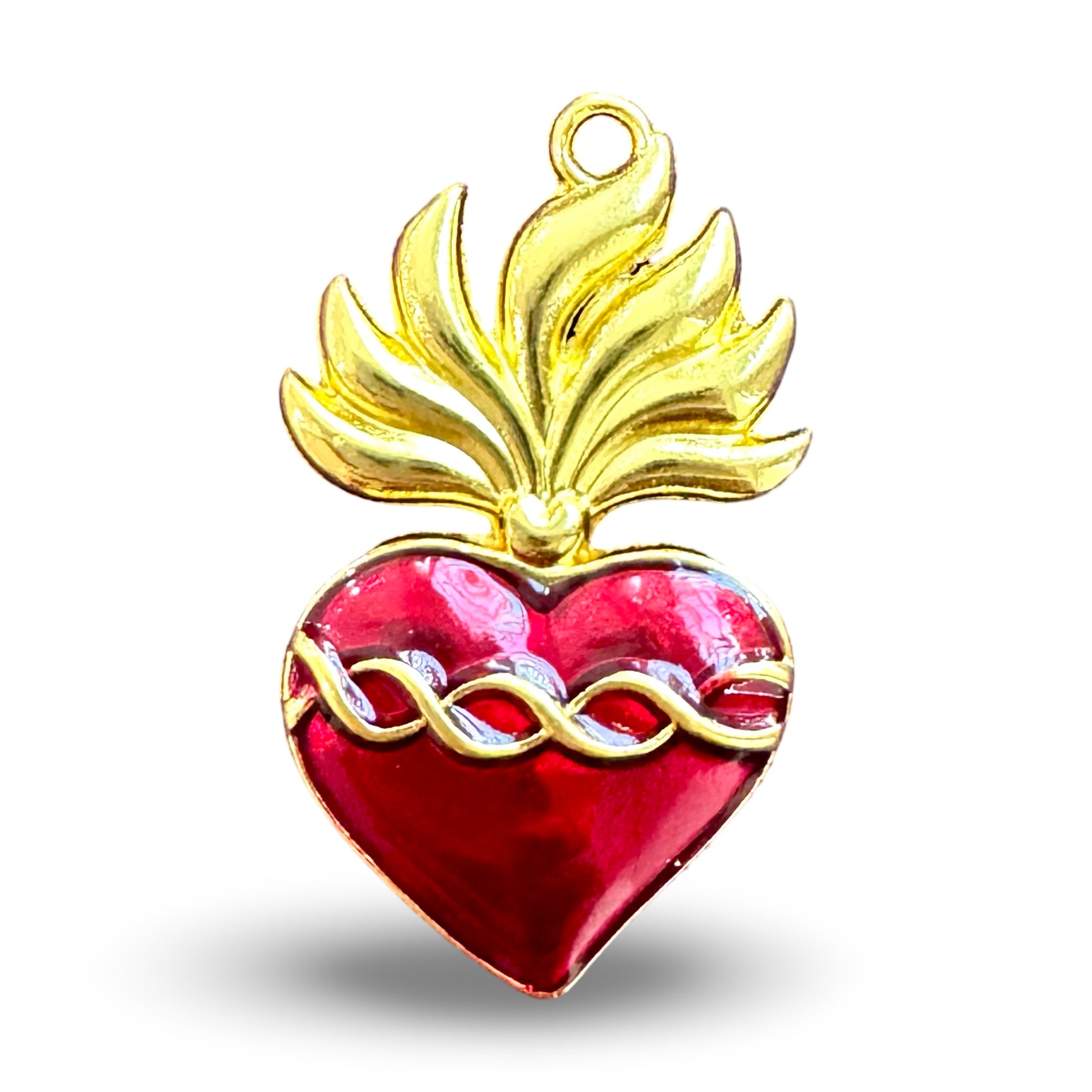 Ruby and Gold Sacred Heart of Jesus Pendant