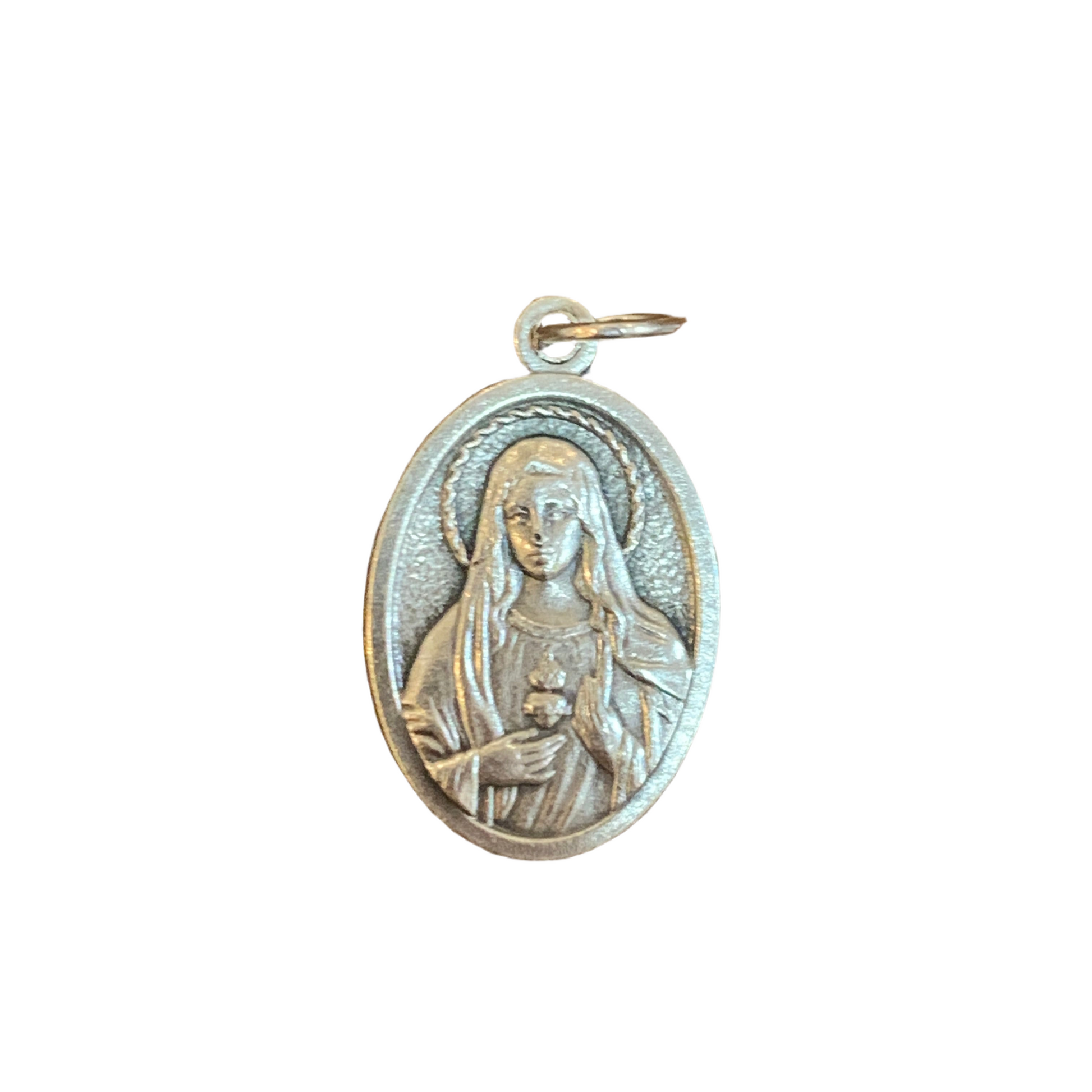 This medal has the Sacred Heart of Jesus on one side and the Immaculate Heart of Mary on the other. Keep the Two Hearts close to your heart with this beautiful medal.