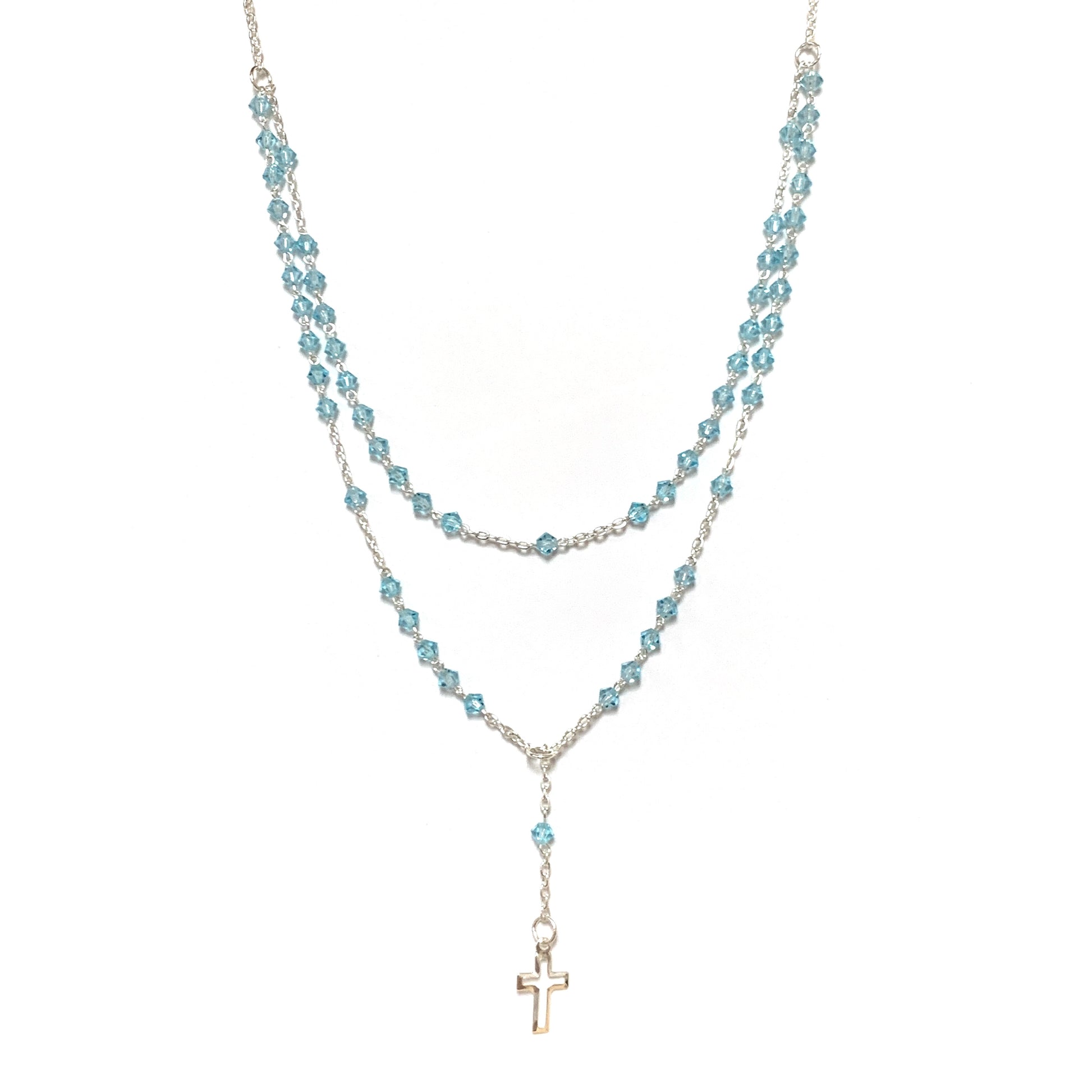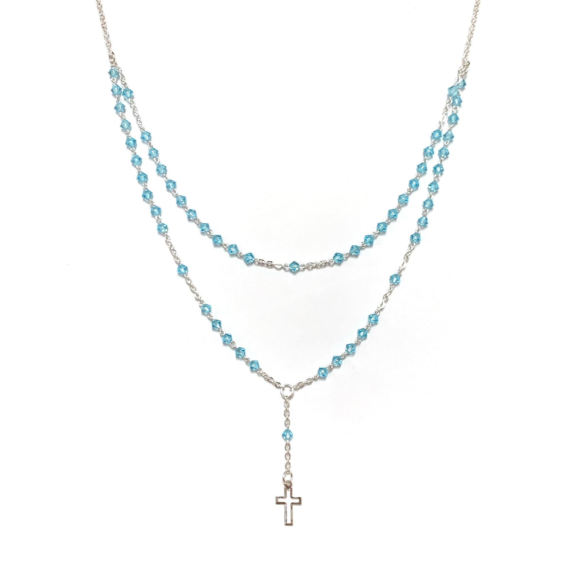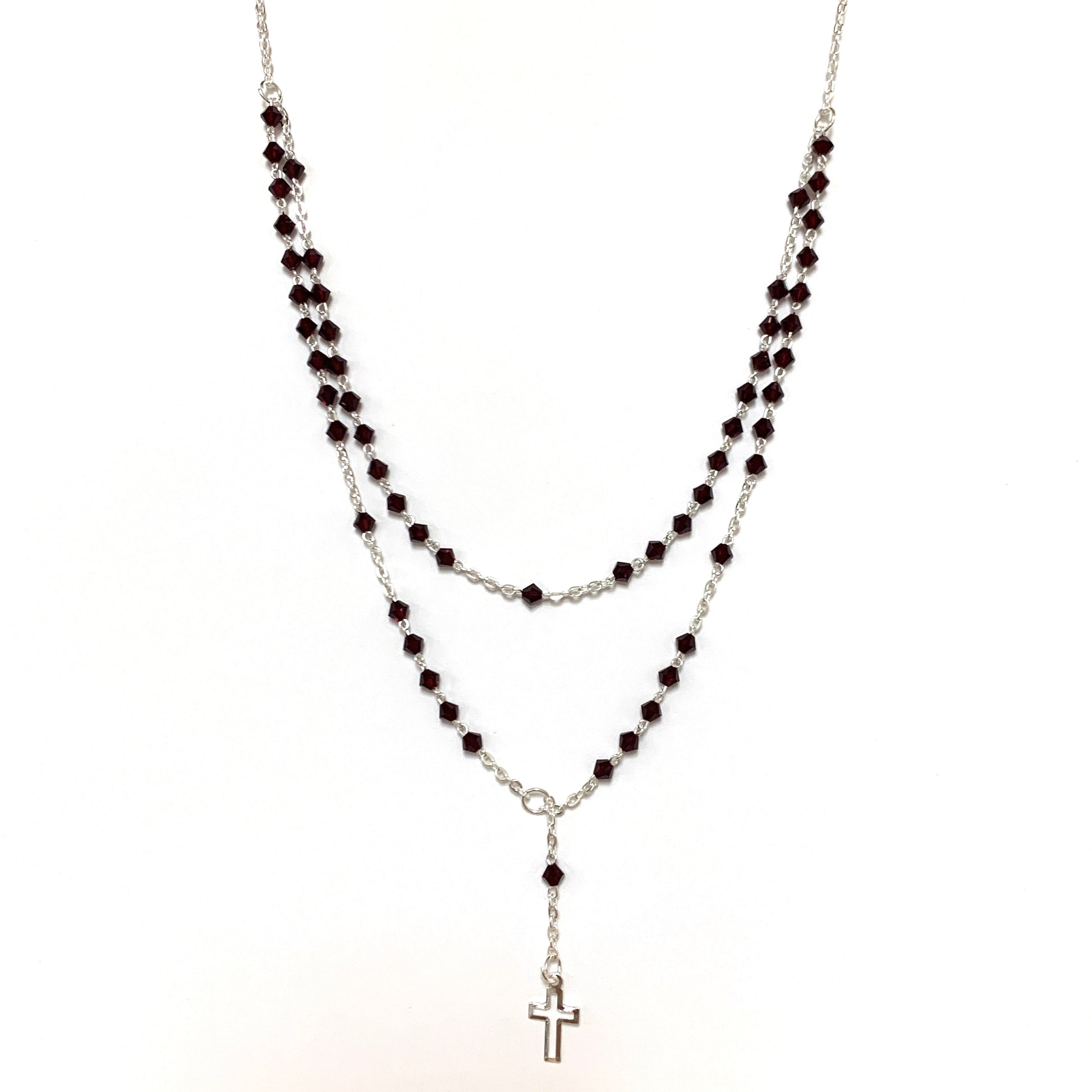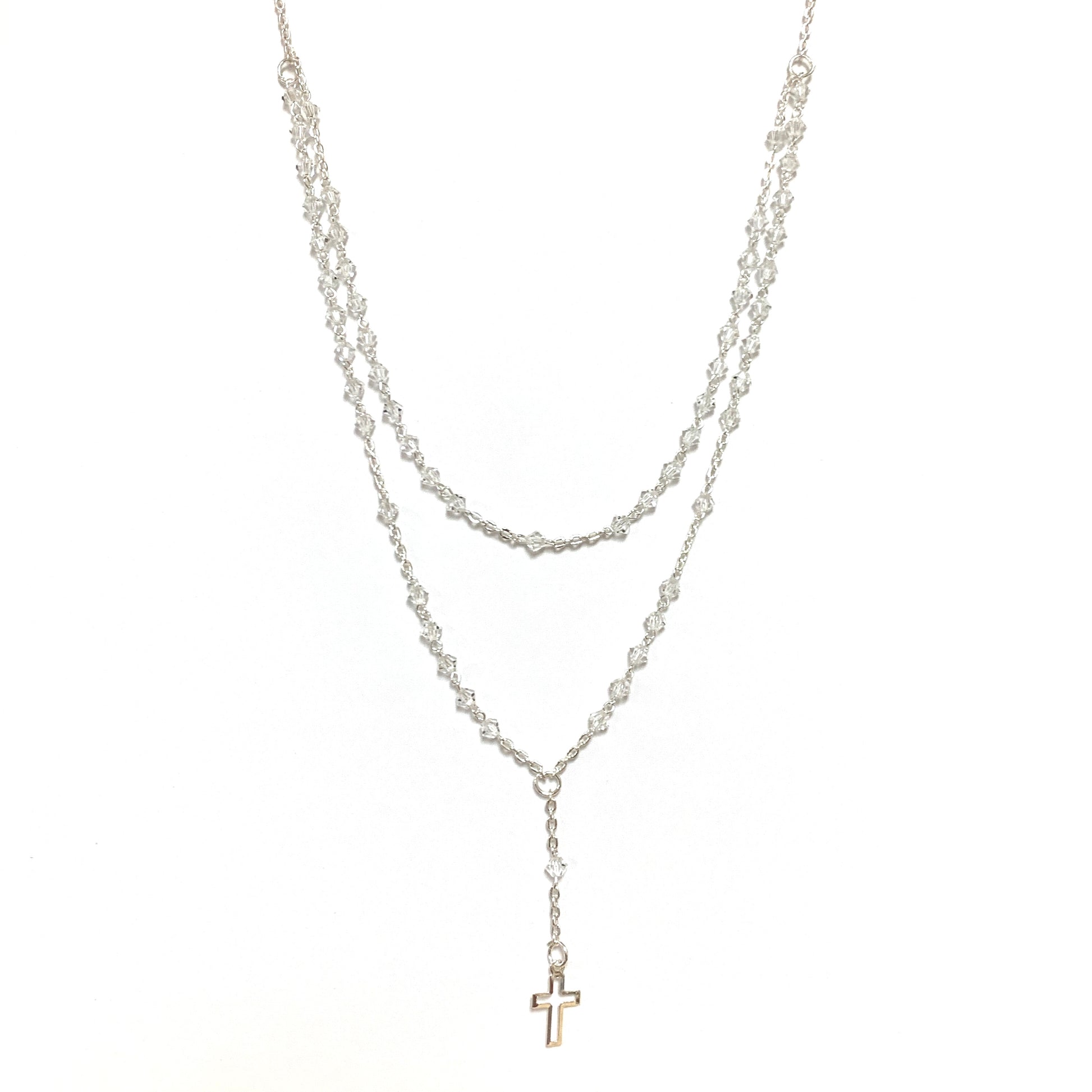 Silver and Crystal Rosary Necklace of Assorted Colors