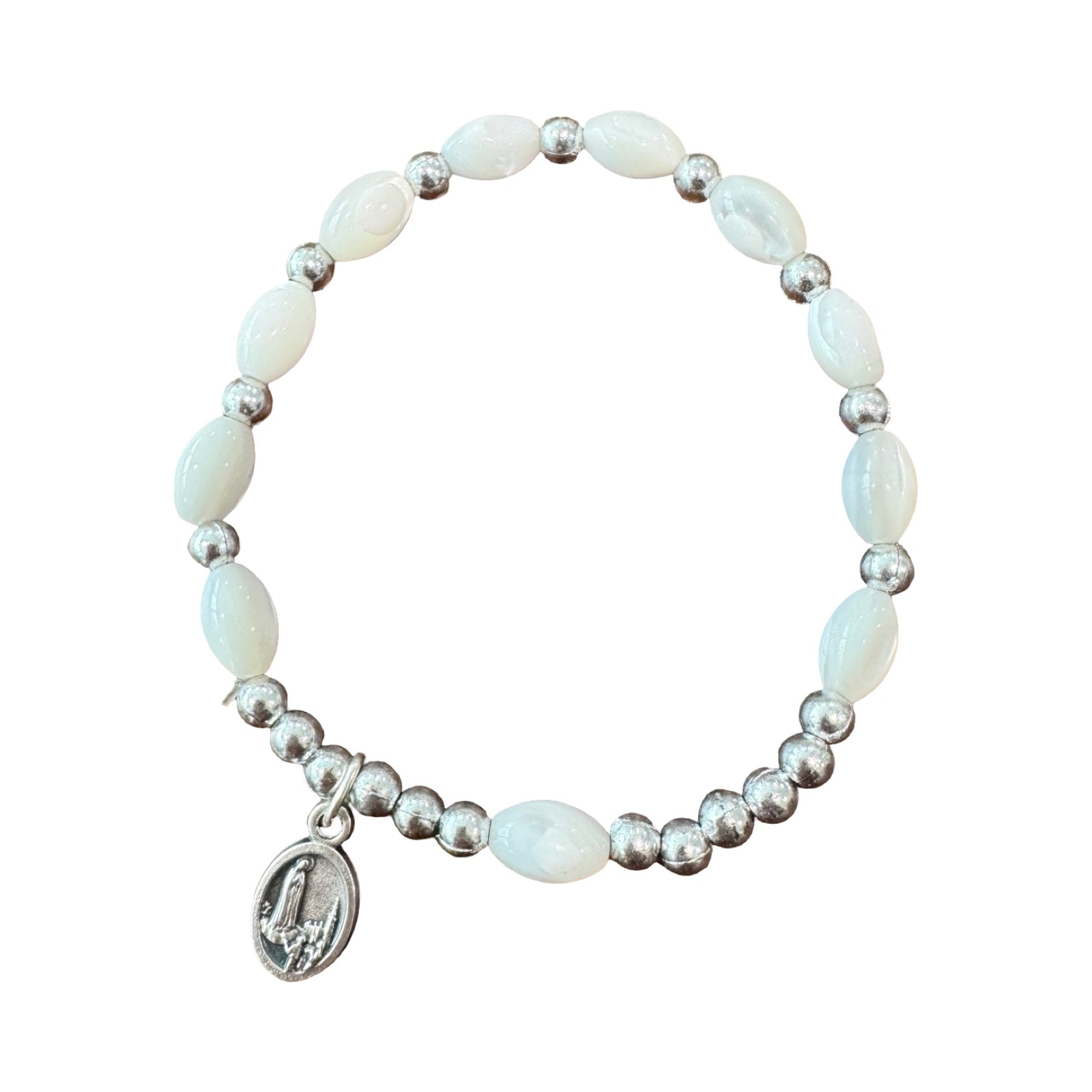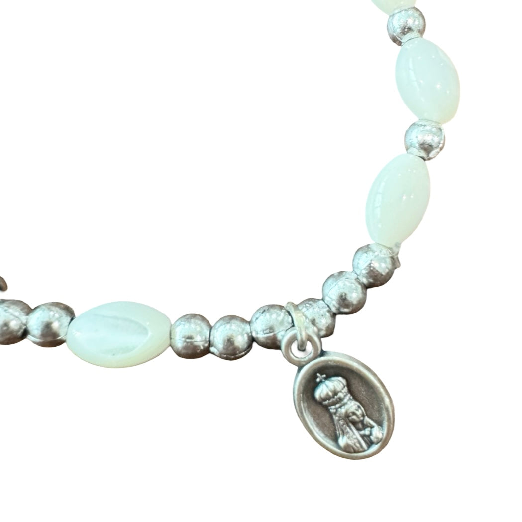 Description: This beautiful bracelet is brought by Mother Adela Galindo from Fatima Portugal. This is the holy site that our Lady of Fatima appeared to the three Shepard children. This bracelet can also double as a decade rosary, as it contains ten beads in a row, and one extra bead separated which can be used as an our father bead. This bracelet would be a wonderful gift for family or friends, so as to spread devotion to the Immaculate Heart!