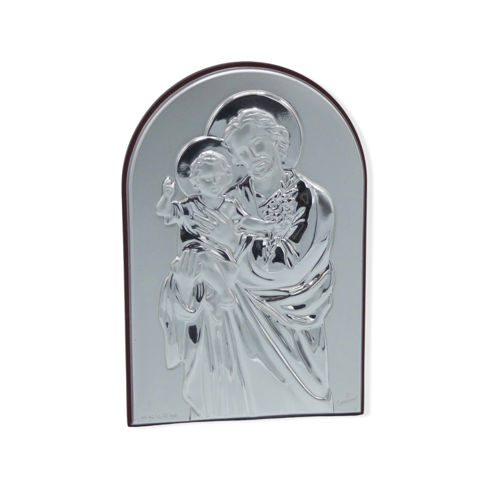 An arched silver image of St. Joseph is an elegant addition to any home or office and a daily reminder of the glory of family life. This image is accompanied by a removable metal footing to be stood on tables and bookshelves, as well as mounted on a wall. This product is brought with love by our Sisters serving the Heart of the Church in Rome, Italy!