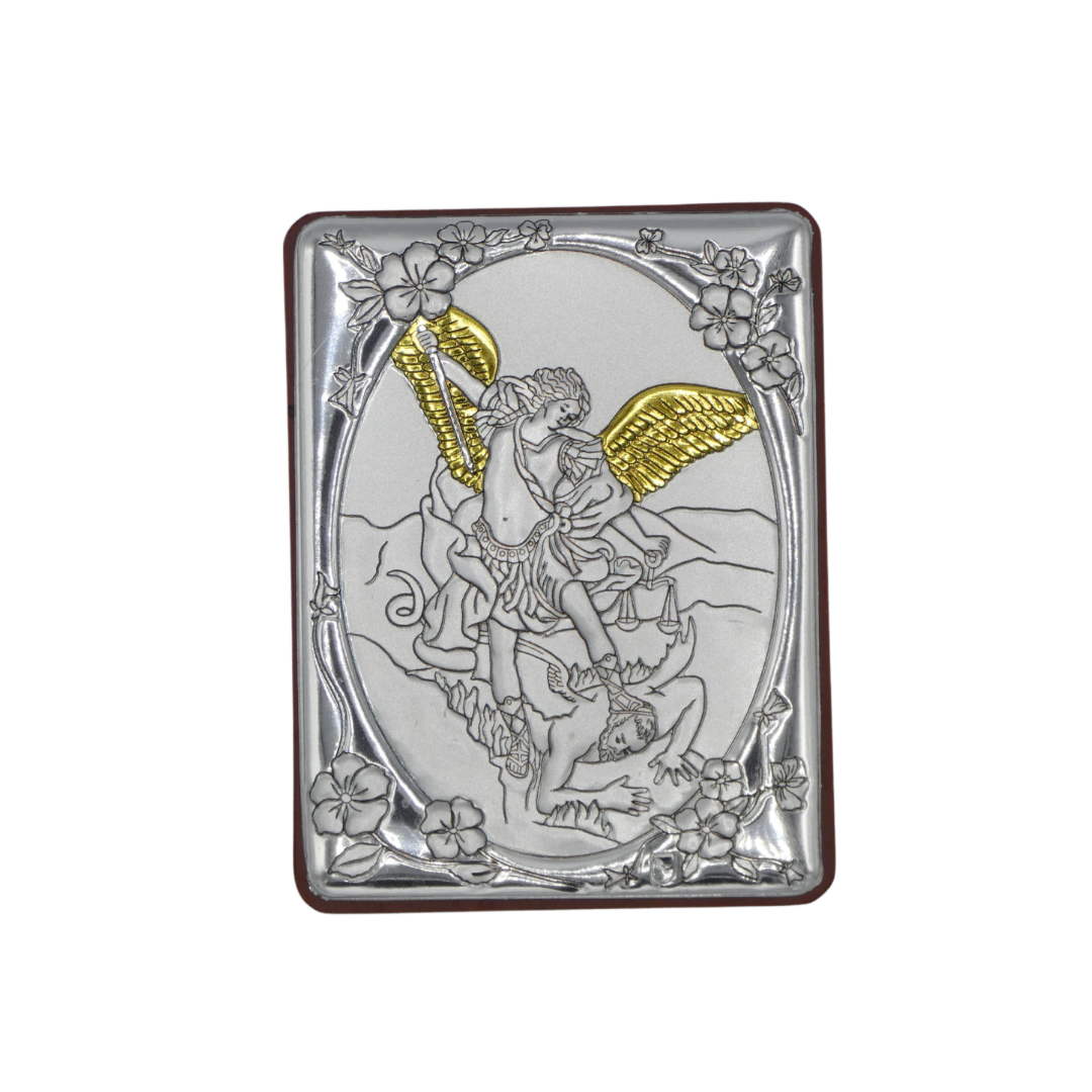 Square Colored Silver Image of St. Michael
