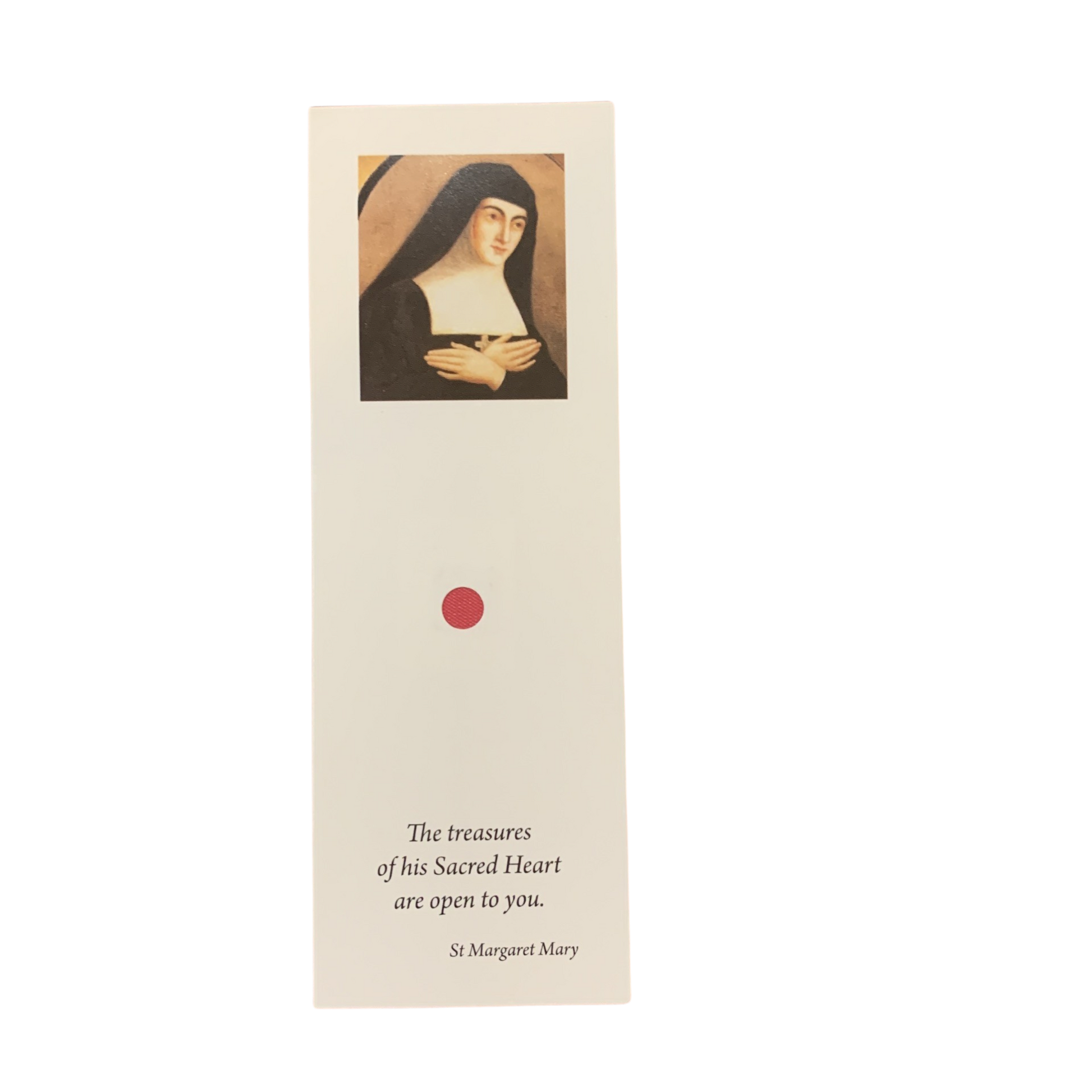 This Bookmark includes a piece of silk which was touched to the bones of St. Margaret Mary, making it a third-class relic.