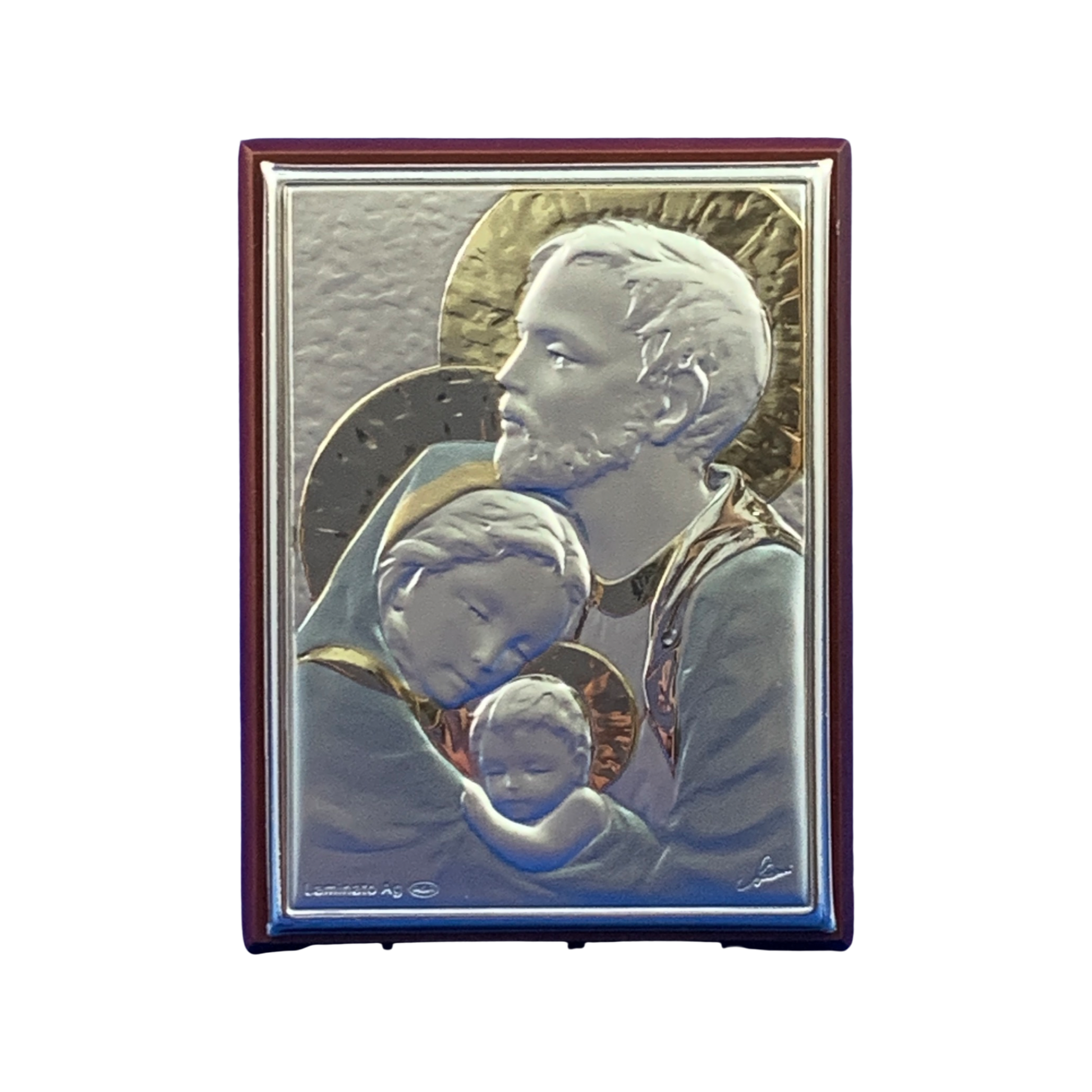A silver image of the Holy Family is an elegant addition to any home and a daily reminder of the perfection of family life. This image is accompanied by a removable metal footing to be stood on tables and bookshelves, as well as mounted on a wall. This product is brought with love by our Sisters serving the Heart of the Church in Rome, Italy!