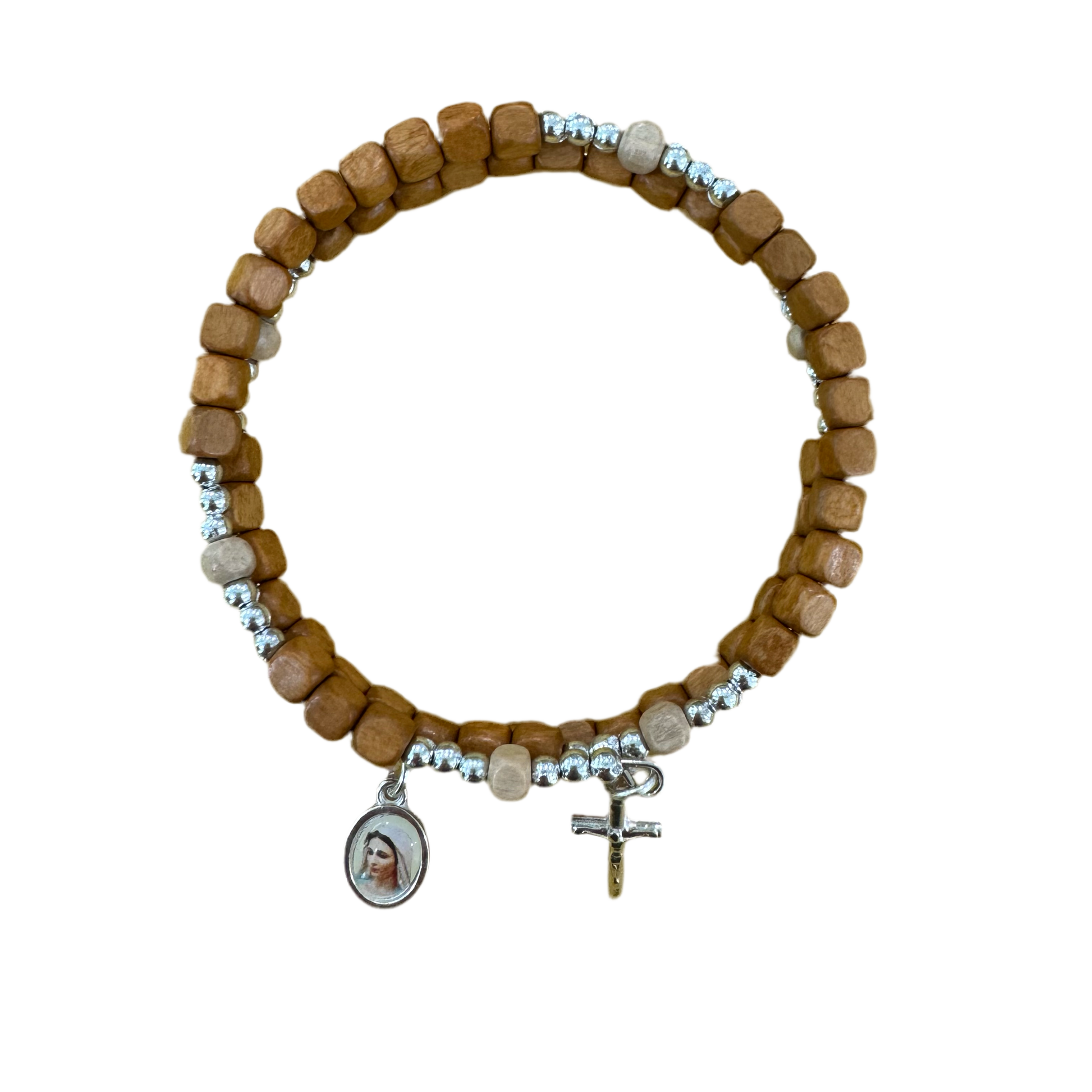 Square Wooden Wrap Rosary Bracelet with Wire Band