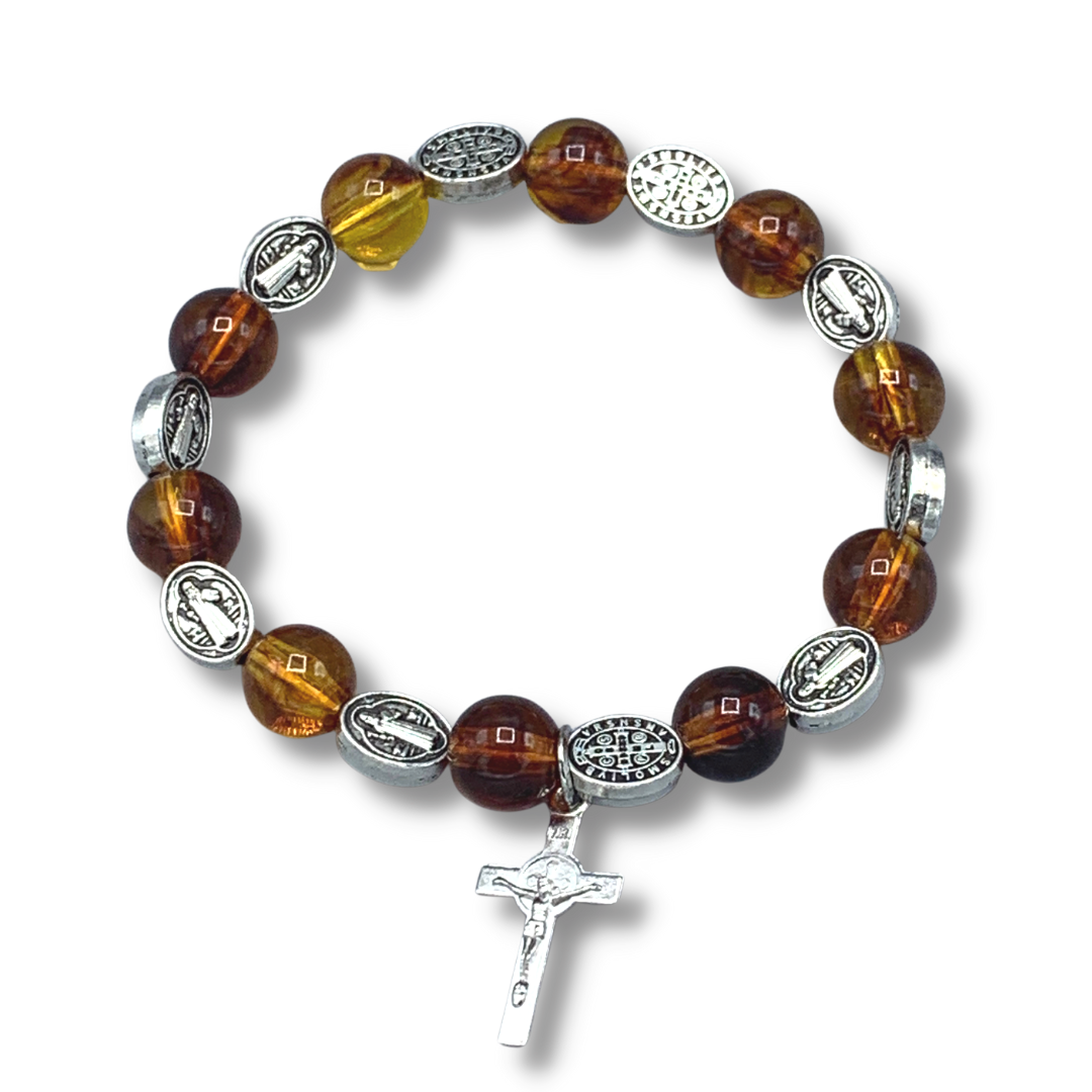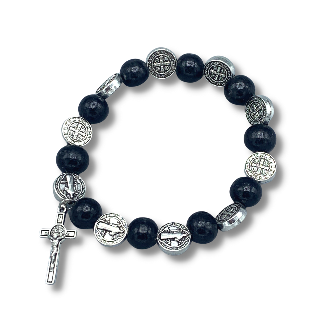 St. Benedict Decade Rosary Bracelet with Hanging Crucifix