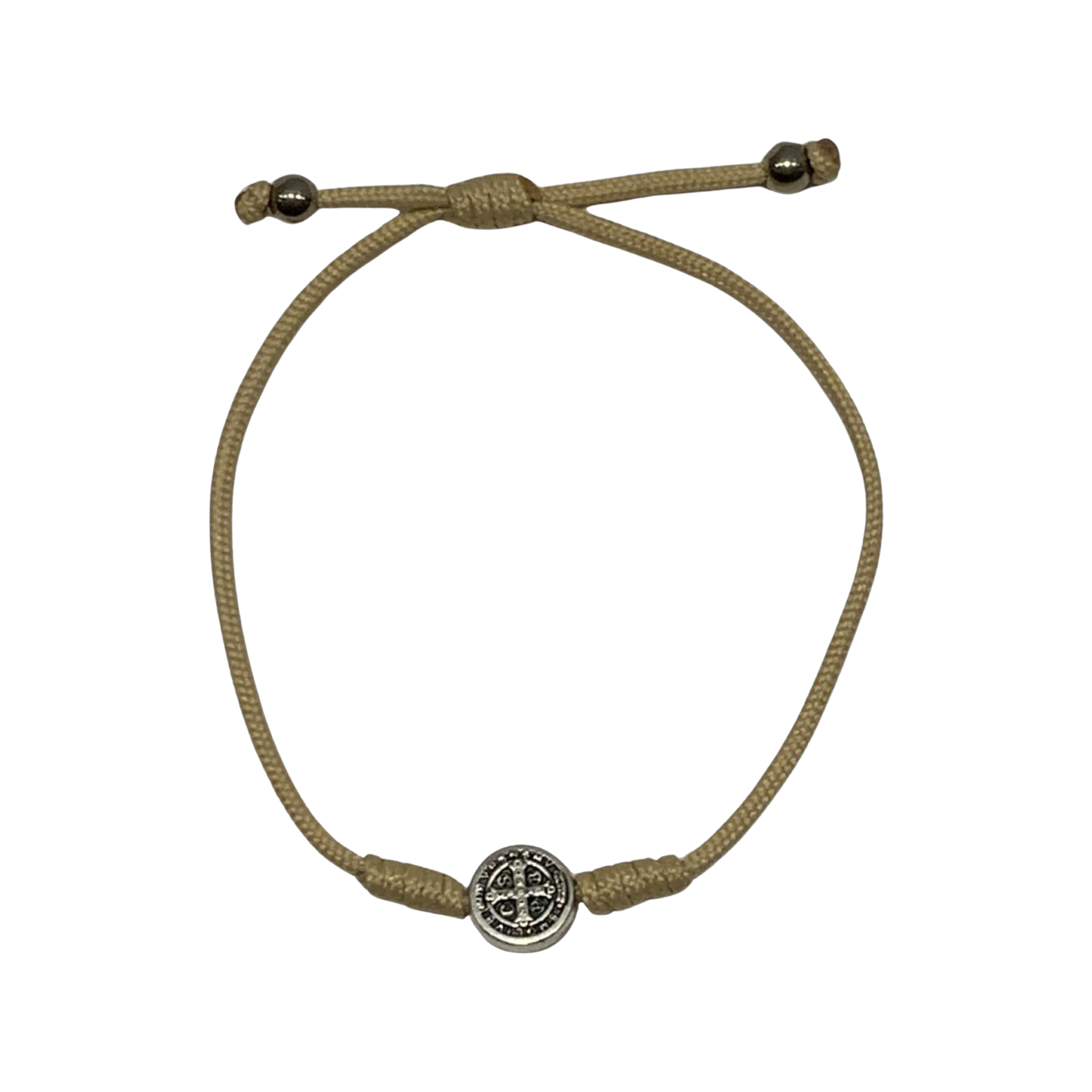 This adjustable cord bracelet with a St. Benedict medal is a great simple yet powerful way to always have on you a sacramental! May all who wear a St. Benedict medal have confidence in the power of Our Lord against all evil, through the particular intercession of St. Benedict.
