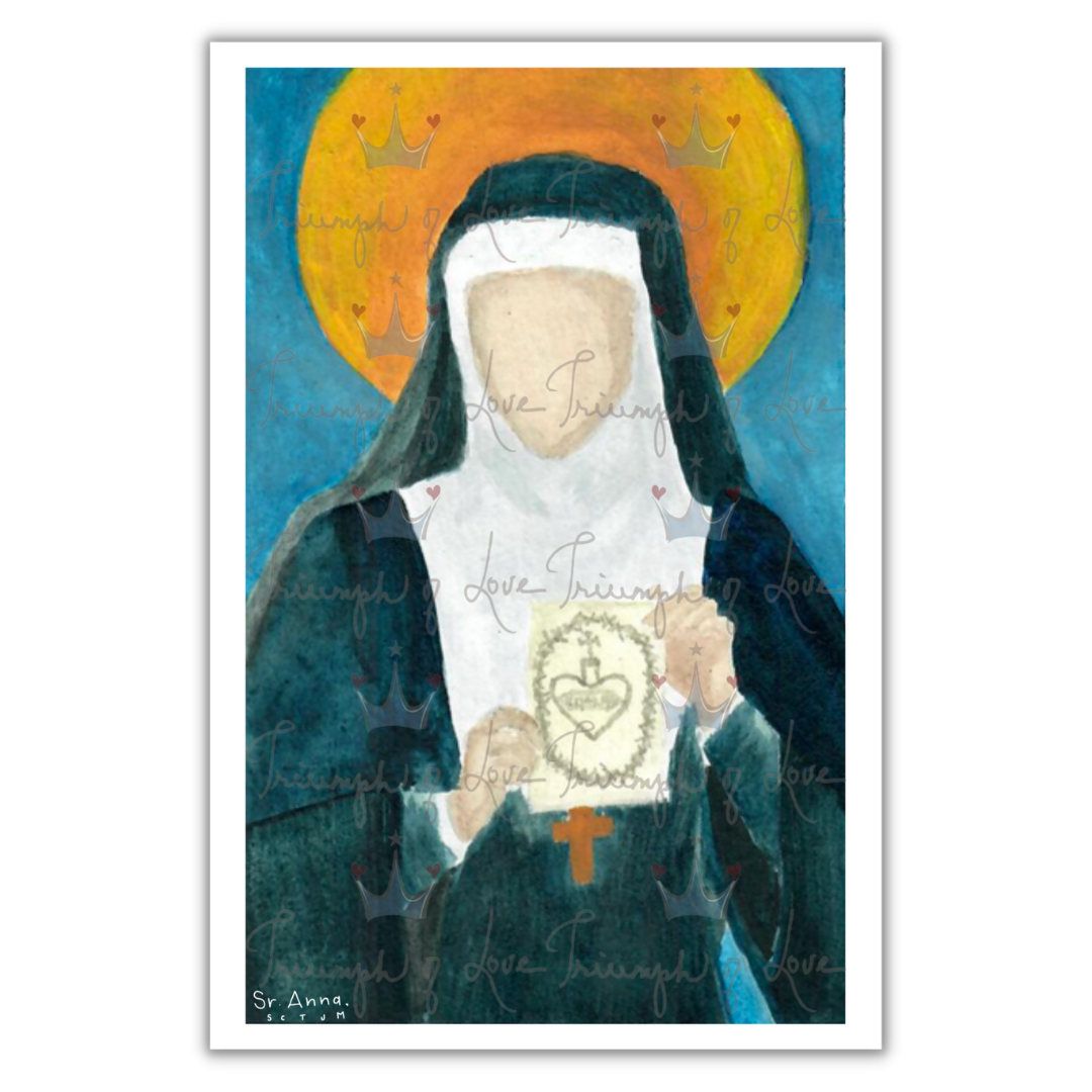 A simple framed image of St. Margaret Mary is a beautiful addition to any home or office space as a constant call to holiness. This original image was hand-painted by the Servants of the Pierced Hearts of Jesus and Mary, making it a unique piece you won't find anywhere else!