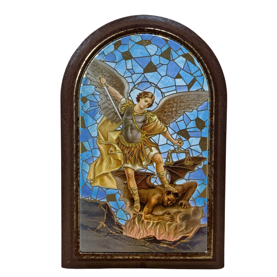 A mosaic image of St. Michael is an elegant addition to any home and a constant assurance of his spiritual protection. This image is equipped with a foldable leg to be stood on tables and bookshelves. This product is brought with love by our Sisters serving the Heart of the Church in Rome, Italy!