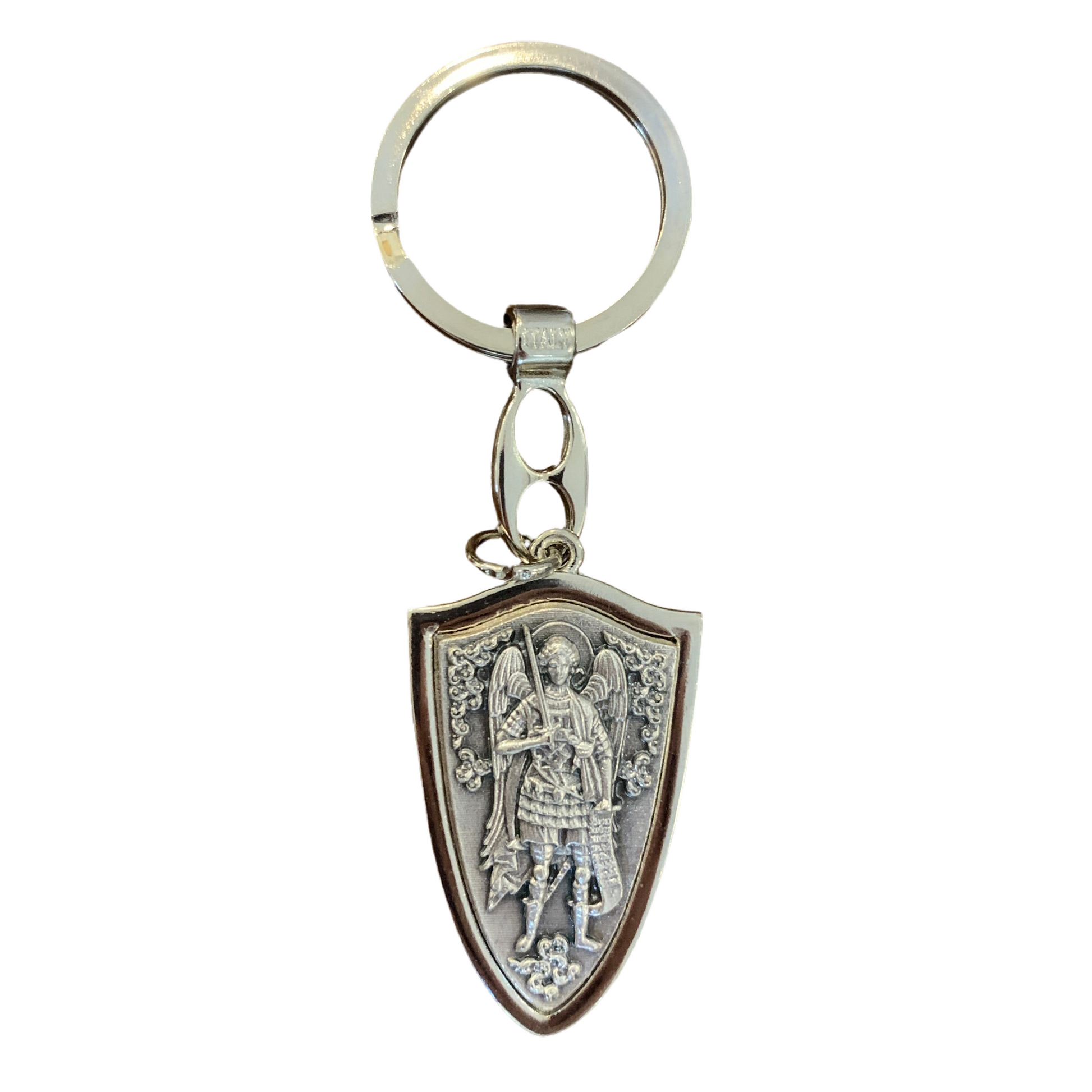 This keychain of a shield bearing St. Michael the Archangel is the perfect gift, and reminds us of his protection in our lives!