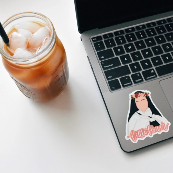 This sticker of St. Therese of Lisieux is hand-drawn by an Apostle of the Two Hearts! It looks beautiful on a laptop, water bottle, notebook, Bible, or phone case!