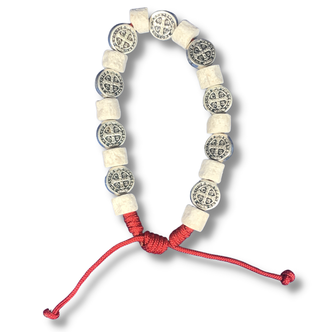 Stone and St. Benedict Medal Bracelet of Assorted Colors