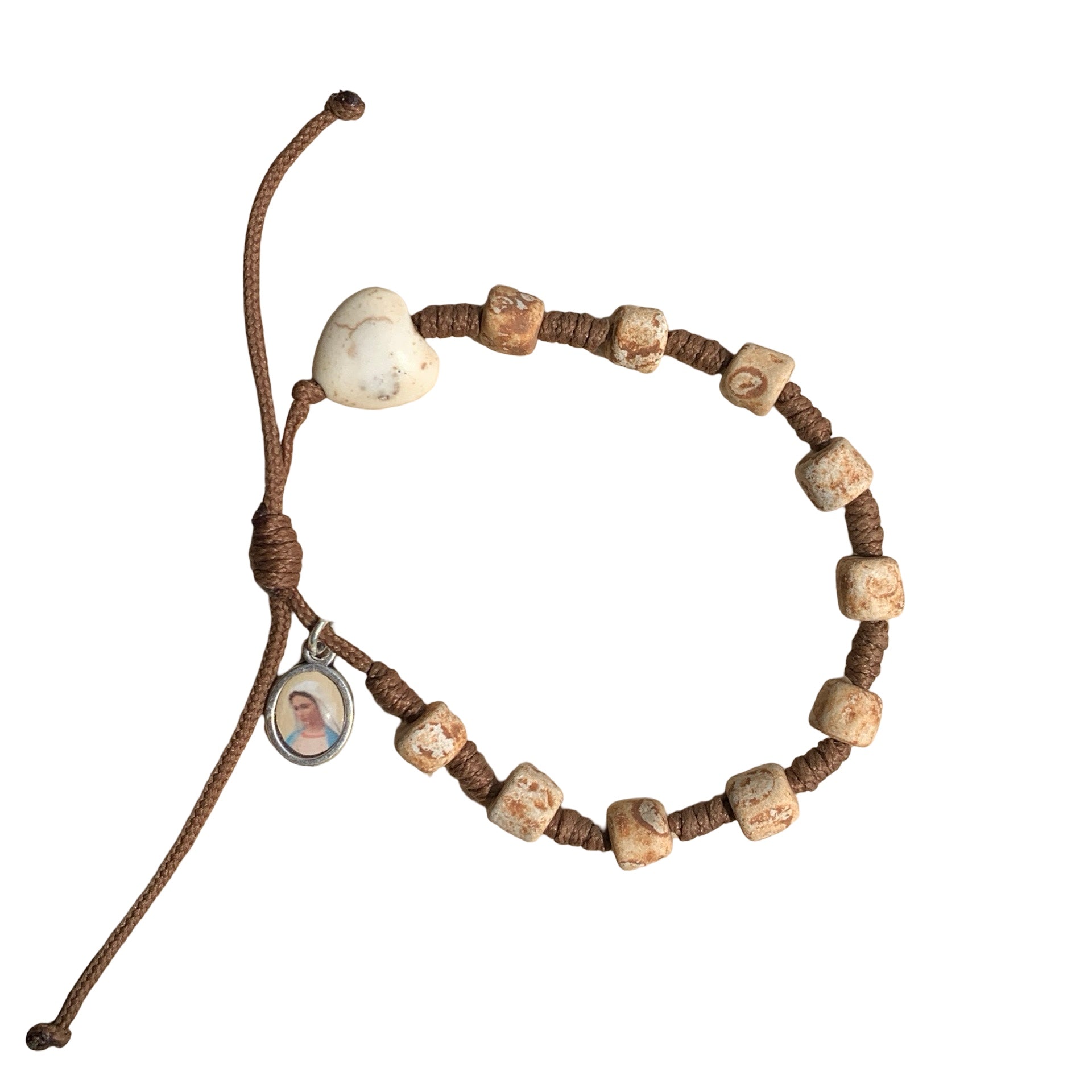 Stone Decade Cord Bracelet with Stone Heart Accent