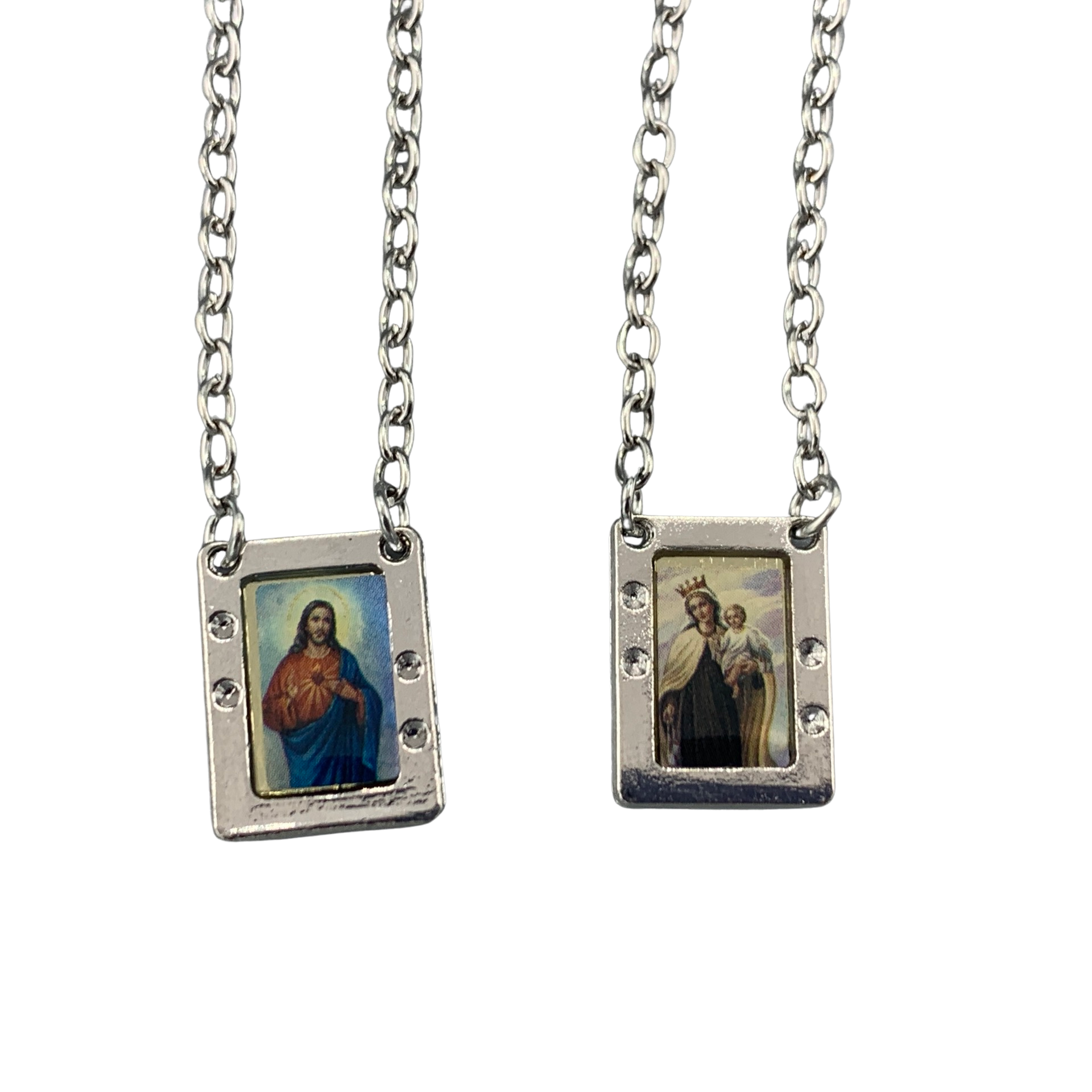Two Hearts Colored Scapular Necklace