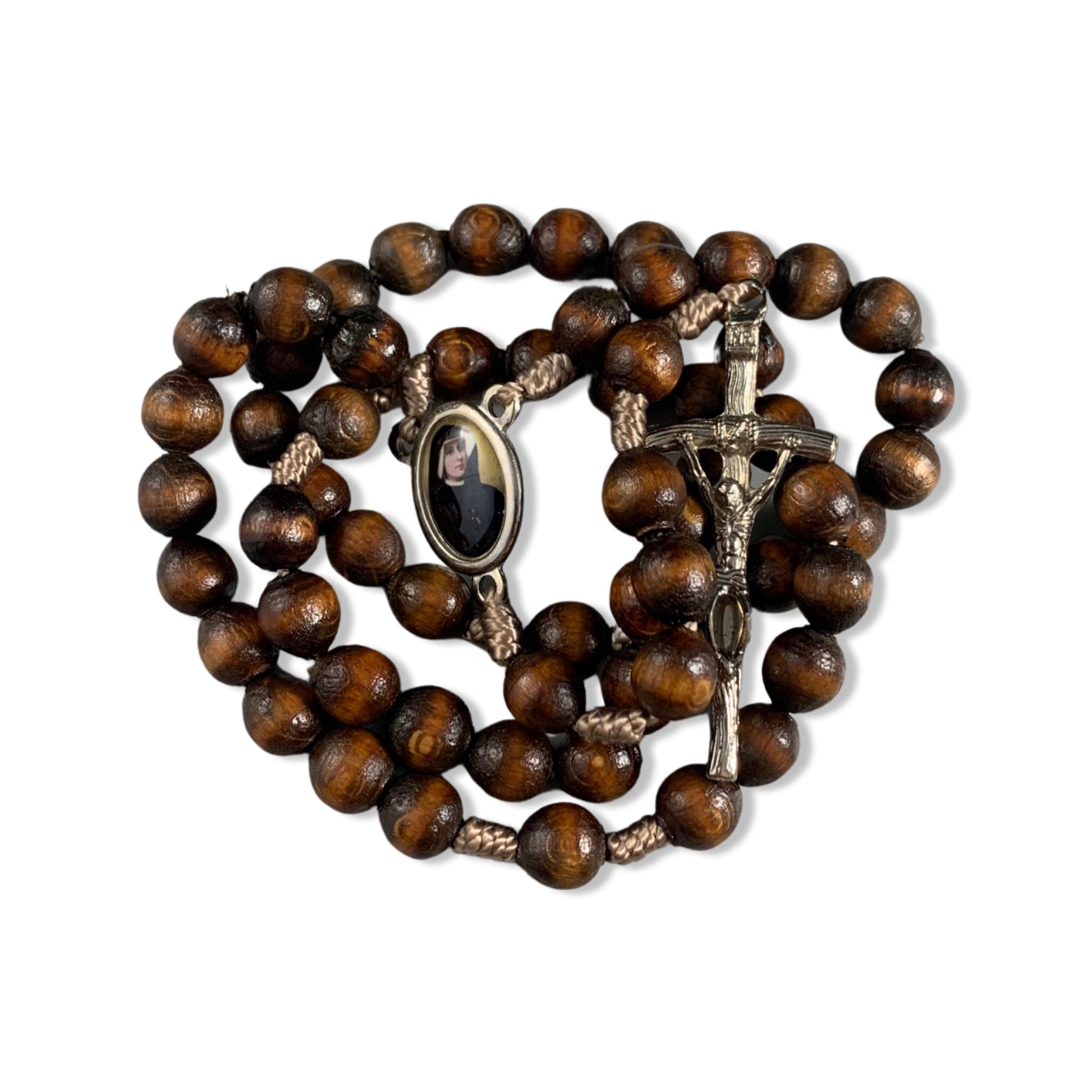 Wood St. Faustina String Rosary with Relic