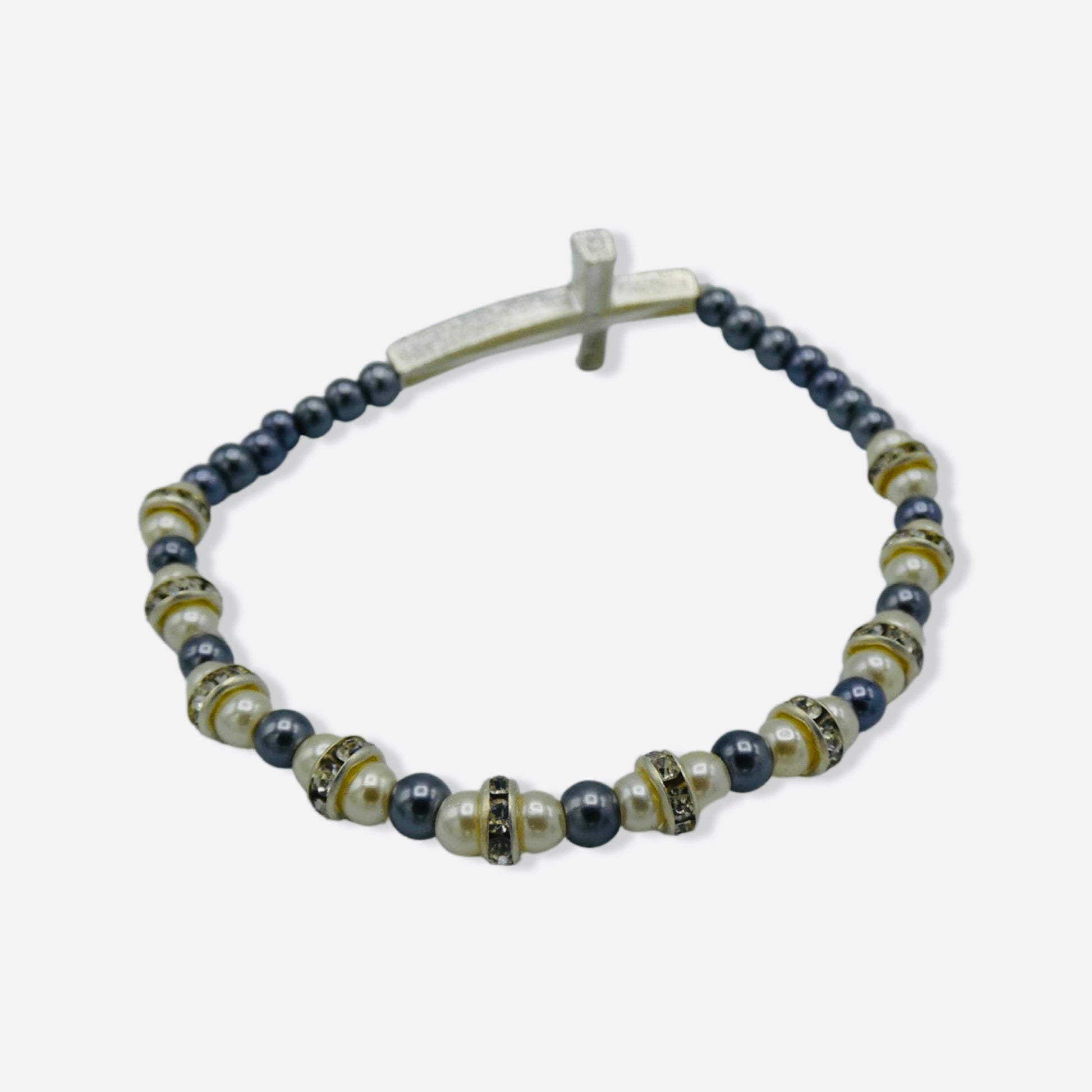 White and Grey Pearl Fatima Decade Rosary with Rhinestone Cross