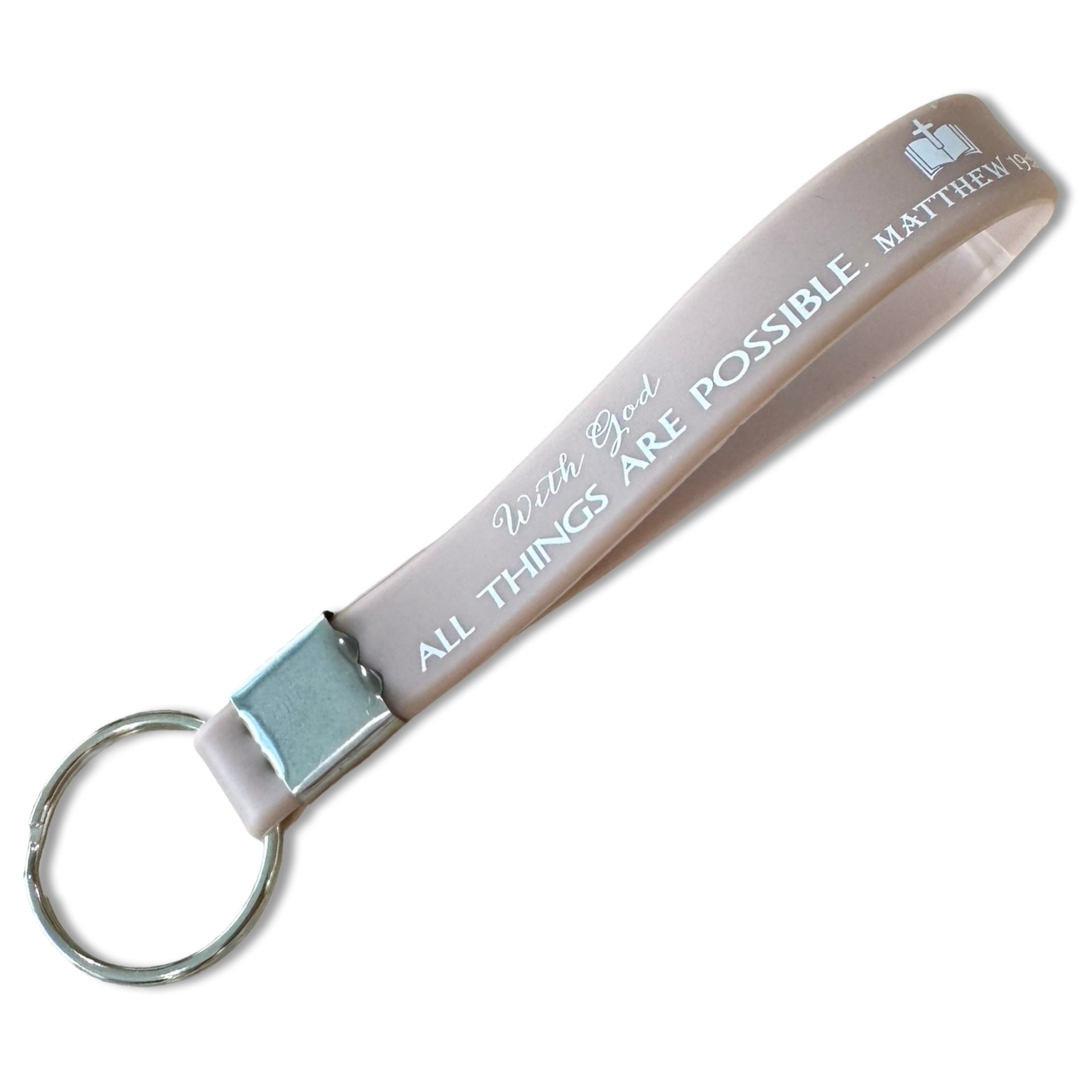 These silicone keychains have the Scripture verse Matthew 19:26 and come in assorted colors. Add your keys and read the Scripture verse as a reminder every time you leave the house.