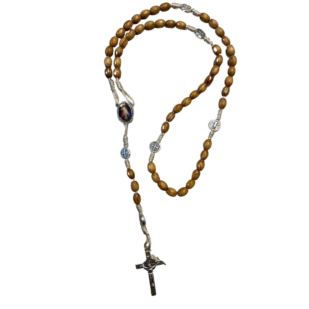 Wood Oval Bead with Cream String St. Benedict Rosary