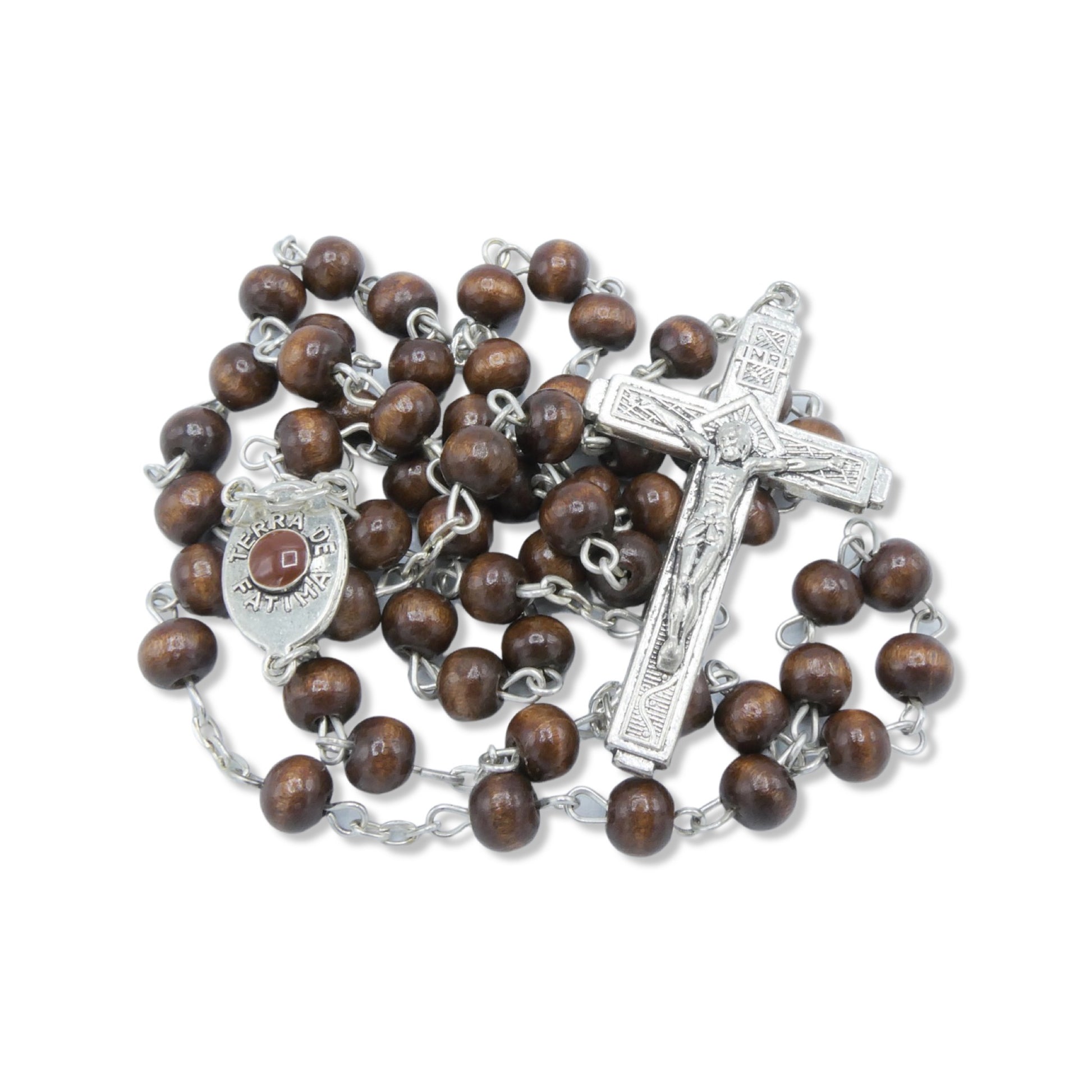 Wood Fatima Rosary with Soil