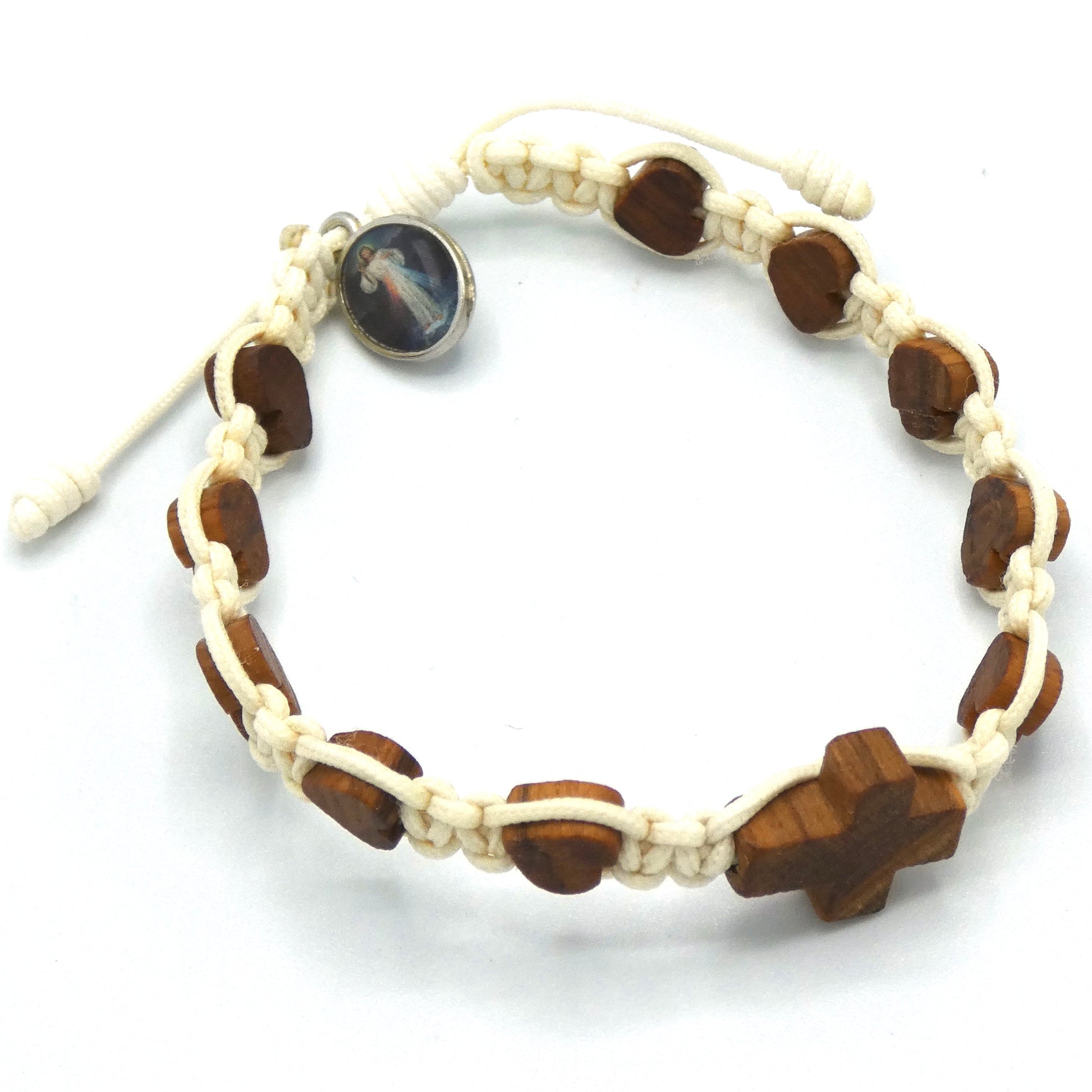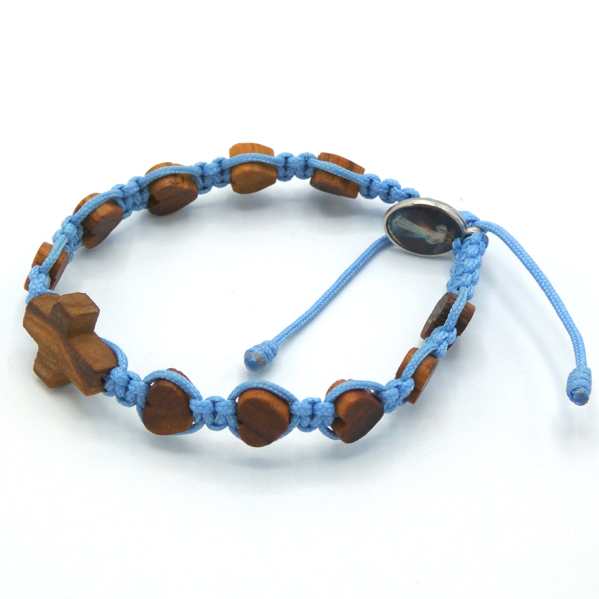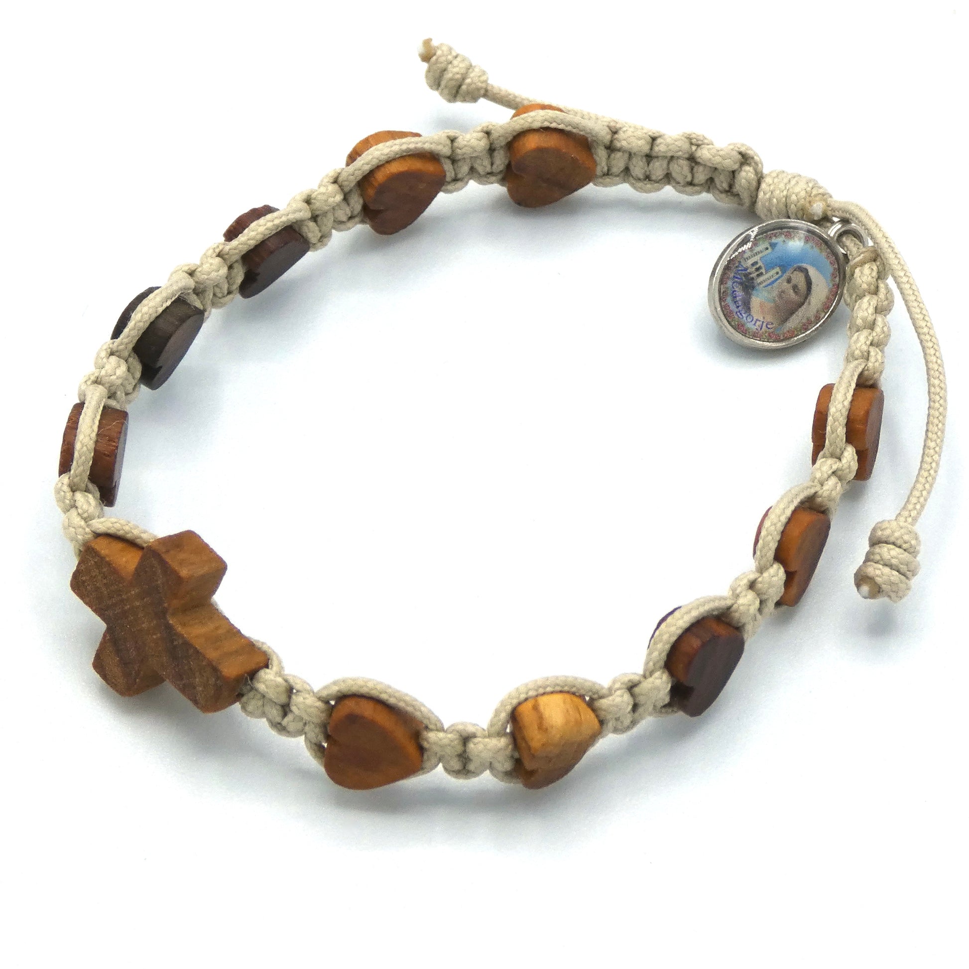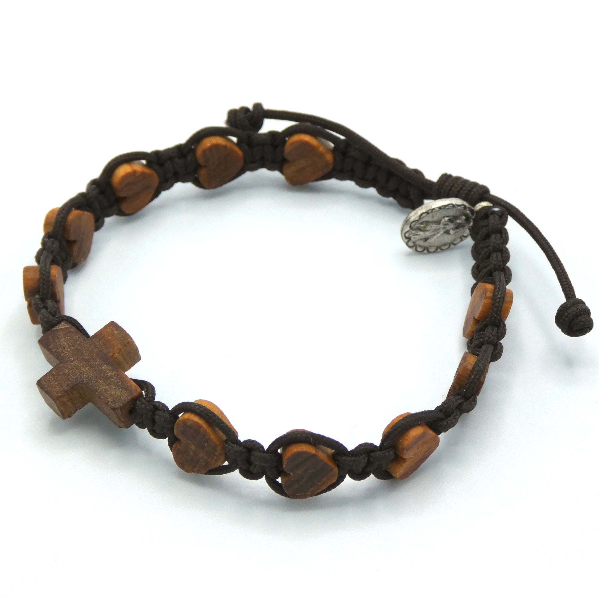 Wooden Cross and Hearts Decade Rosary Bracelet of Assorted Colors