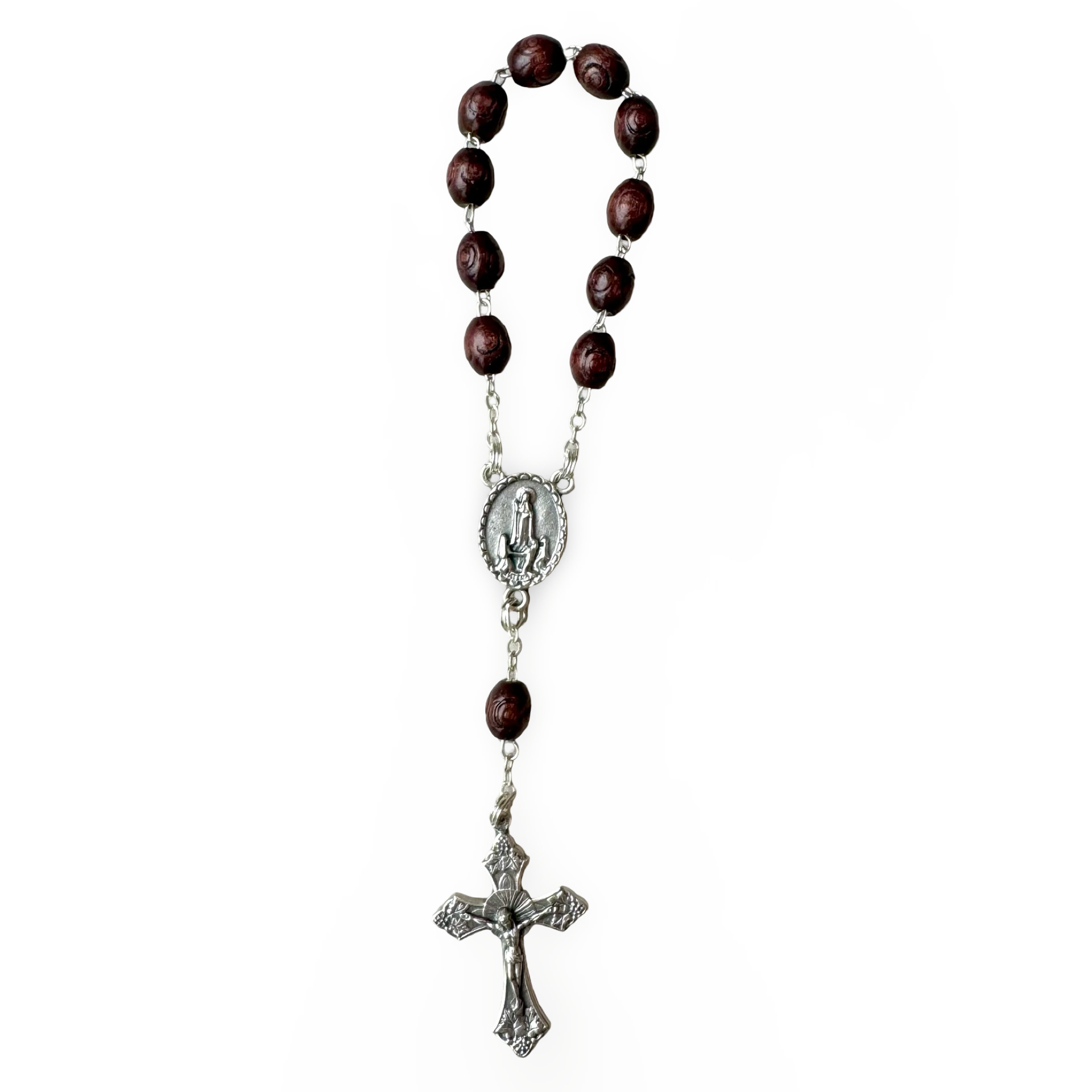 This wooden Fatima Decade Rosary is a simple but powerful symbol of Our Lady's intercession in and love for Her children. Use this decade rosary to pray the mysteries of the life of Christ on the go or in the car.