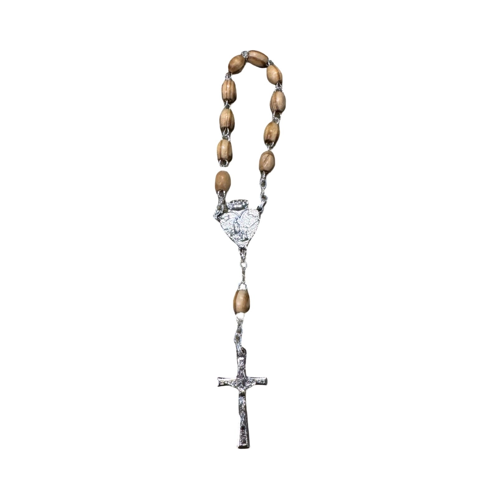 Description: This beautiful wooden decade rosary contains a heart medal that at the top is shaped as crown. This rosary can remind the person who has it, to make of their life a triumph of the Immaculate Heart of Mary.