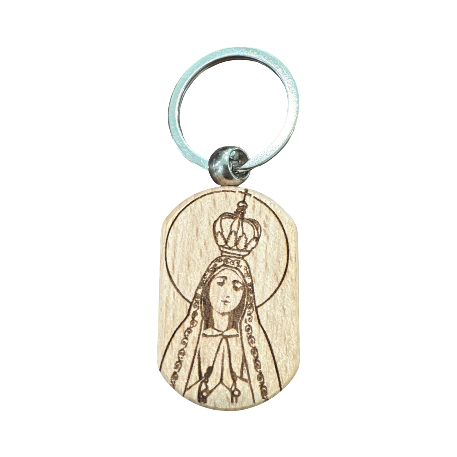 Wooden Our Lady of Fatima Keychain
