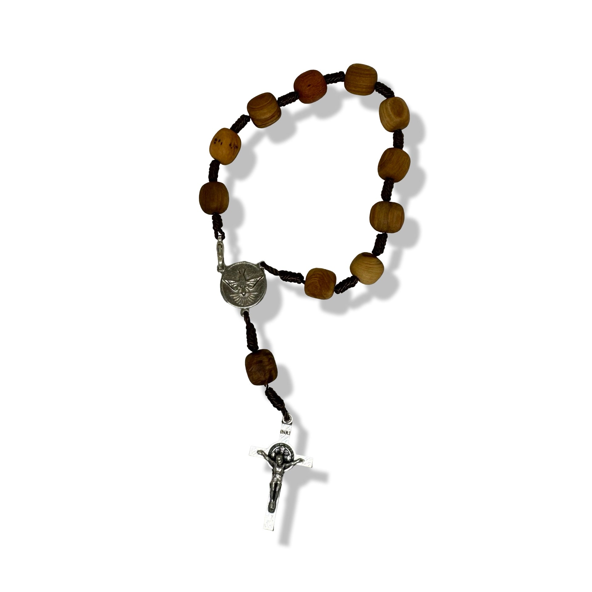 Our Wooden Bead Queen of Peace Decade Rosary fits comfortably around the hand, offering the recipient the possibly of carrying the rosary with you at home, work, while you drive... the possibilities are endless! Featuring a medal of Our Lady Queen of Peace in the center, this rosary reminds us of our personal call to always be builders of peace. This rosary, coming from a holy site, is perfect as a gift or for yourself to offer prayers for your family, your friends, and the entire world. This rosary comes from where many believe our Blessed Mother has appeared in Medugorje, and is brought by Mother Adela, Foundress SCTJM.